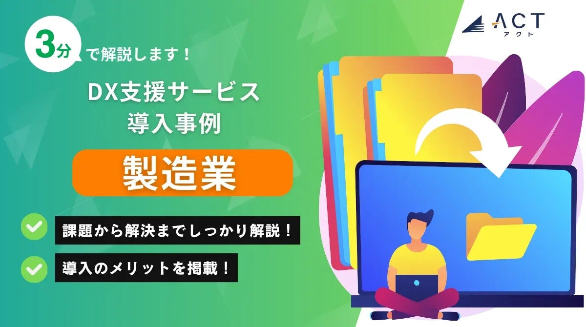 今年30周年を迎え、サイバーセキュリティ事業などを行う株式会社アクト(本社:東京都文京区、代表取締役CEO 小林 智彦 、以下 アクト)は【3分で解説!製造業|DX支援サービス導入事例】のホワイトペーパーを公開しました。