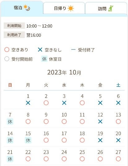 施設予約(宿泊型・通所型):2025年12月15日(月)