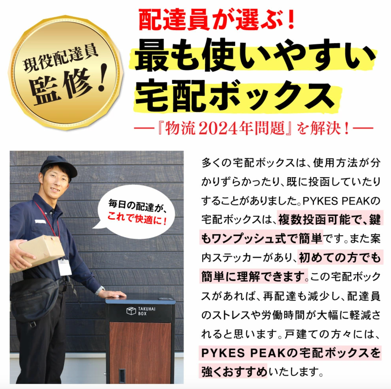 配達員が選ぶ!最も使いやすい宅配ボックスに選ばれ、「物流の2024年問題」解決に期待されています