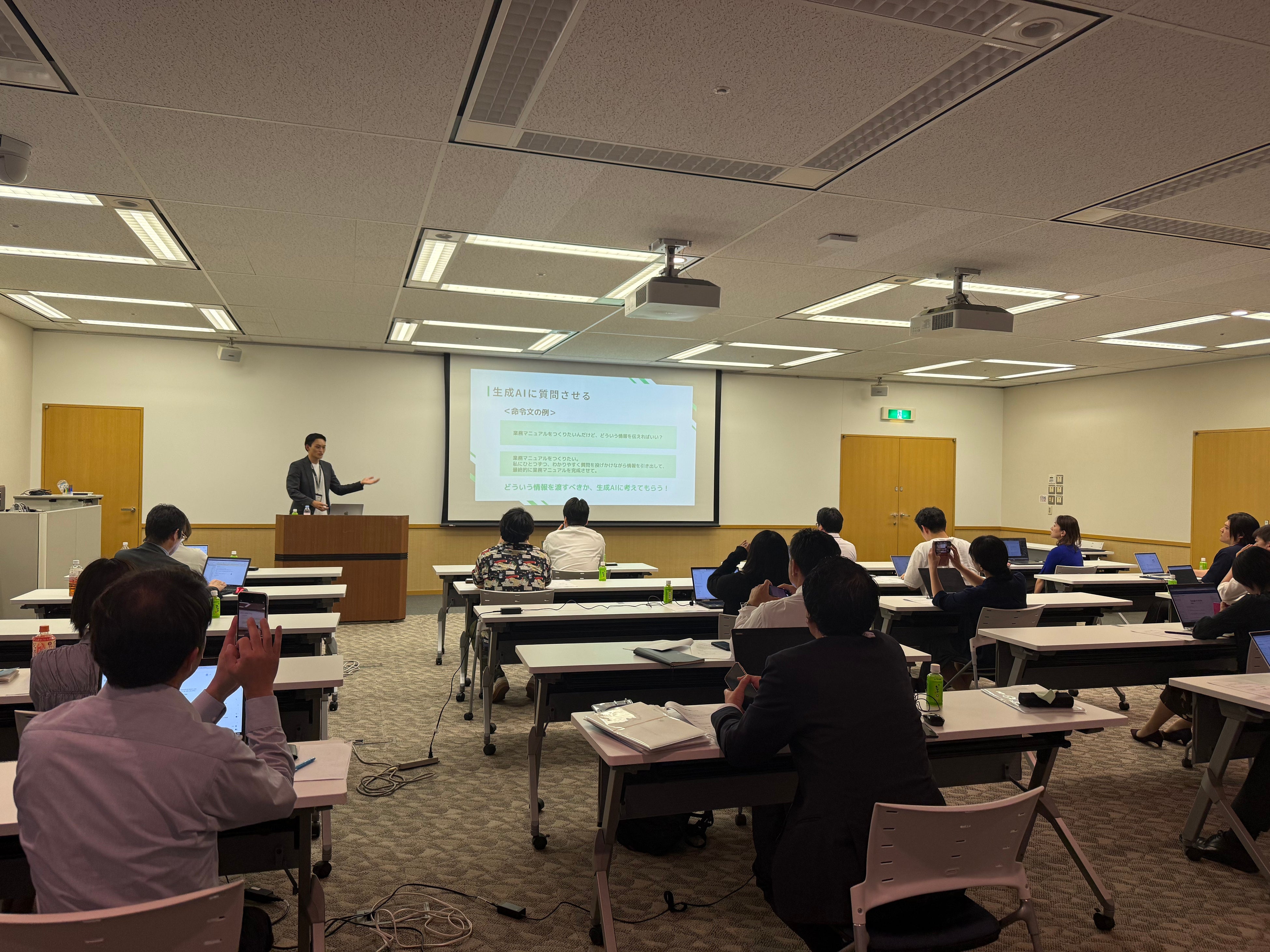 このような課題を背景に生成AIを「知る」だけでなく「使いこなし、業務を改善する」プロセスを体感できる実践型ワークショップの開催を決定しました。当社、浅香が講師として登壇し、短時間で実務に直結するAI活用スキルを習得いただく機会を提供いたしました。