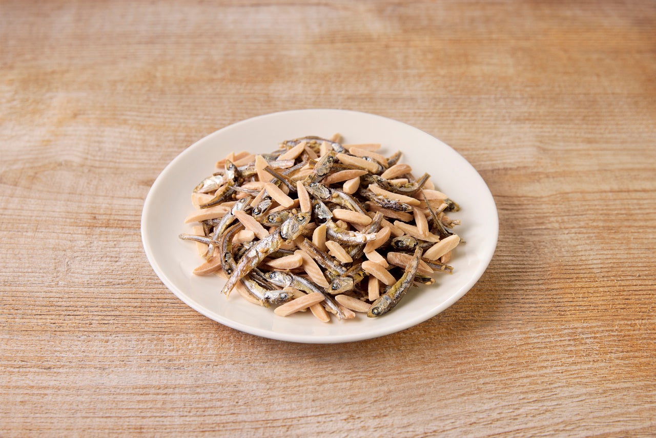 原材料名:アーモンド(アメリカ産)、カタクチイワシ煮干、(カタクチイワシ(瀬戸内海産)、食塩)(瀬戸内海産)、砂糖、いりごま、還元水飴、食塩*瀬戸内海産カタクチイワシの煮干使用