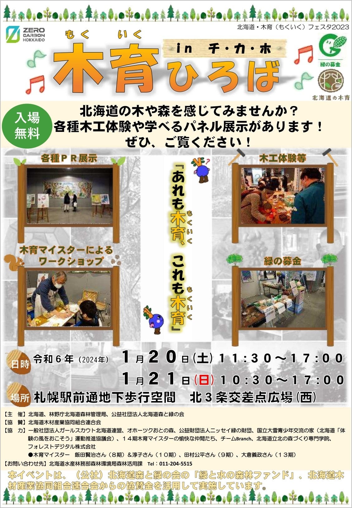 この「北海道の木育」を広く道民の皆さんに知っていただくことを目的として、「木育ひろばinチ・カ・ホ」を開催します。
