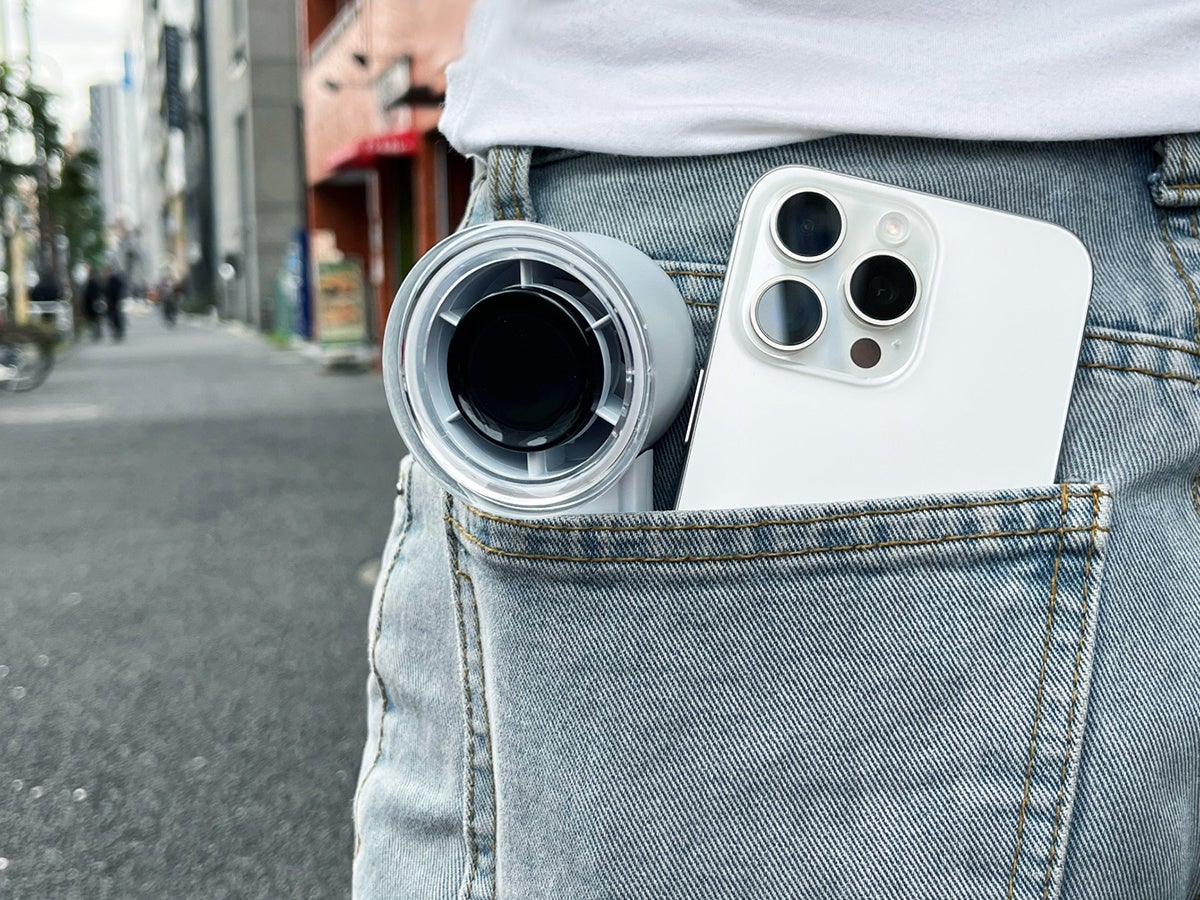一般的なスマートフォンよりも軽い約160gで、どこへでも気軽に持ち歩くことができます。小型ヘッド設計で、ポケットにすっぽり入ります。ポーチやウエストバッグなど、小さなかばんに入れて散歩に出かけるときにも負担にならないコンパクトなサイズです。