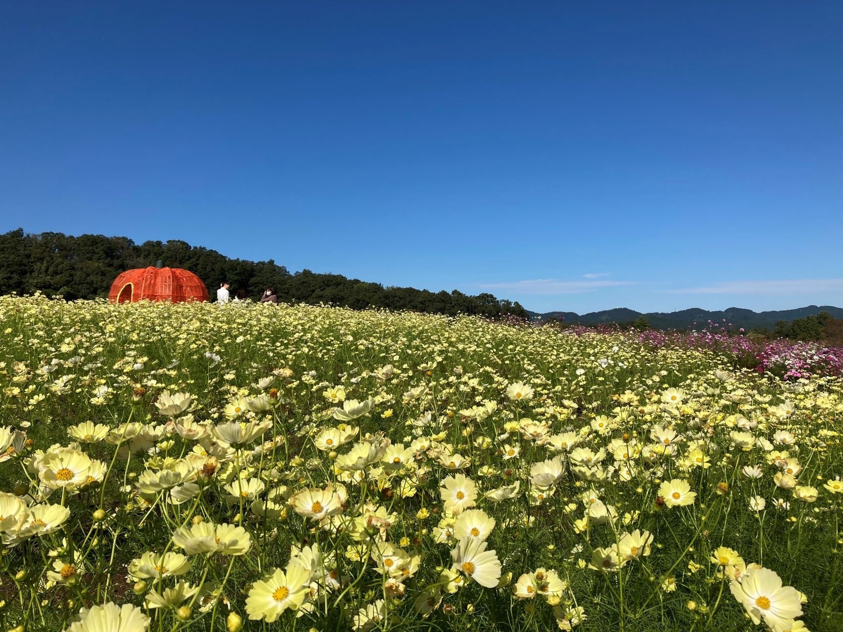 ●3,000 ㎡の花の丘で赤・白・ピンクのコスモス 25 万本が咲き乱れます。