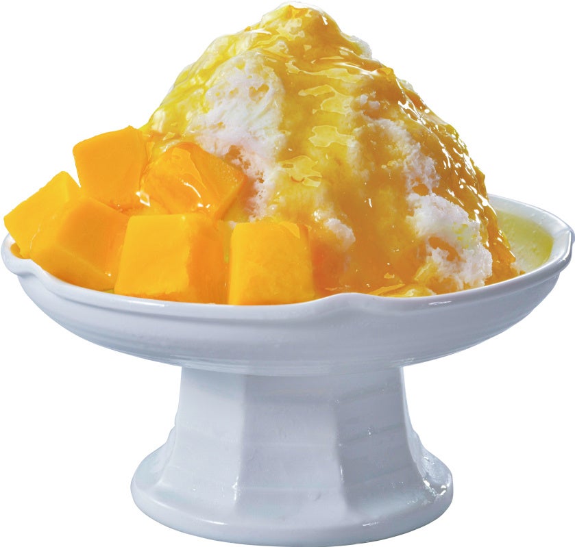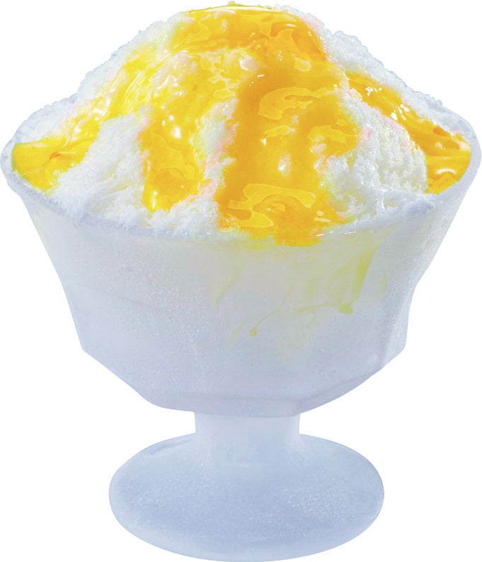 ミルク氷に色鮮やかなレモンソースをかけ、フローズンマンゴーをトッピングしました。
