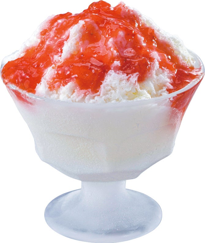 ミルク氷の上に栃木県産とちおとめを使用した特製いちごソースをたっぷりかけ、フローズンベリーをトッピングしました。
