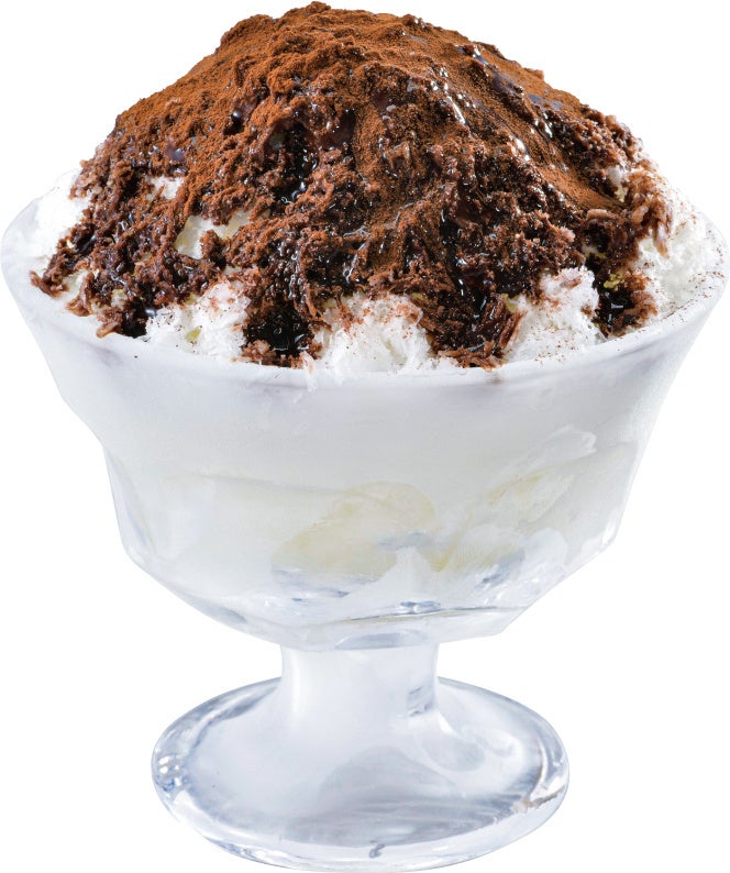 カカオの芳醇な香りが特長のチョコソースとほろ苦い味わいのココアパウダーがミルク氷と溶け合い、まるでチョコレートケーキのような濃厚な味わいをお楽しみいただけます。