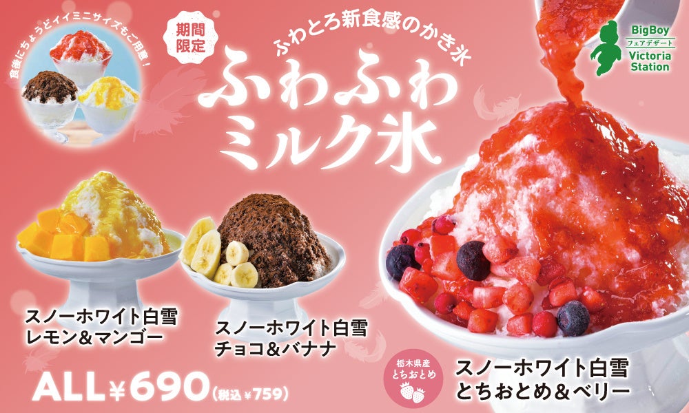 ぜひこの機会に、お近くの「ビッグボーイ」「ヴィクトリアステーション」で“ミルク氷”の新感覚かき氷をお楽しみください。