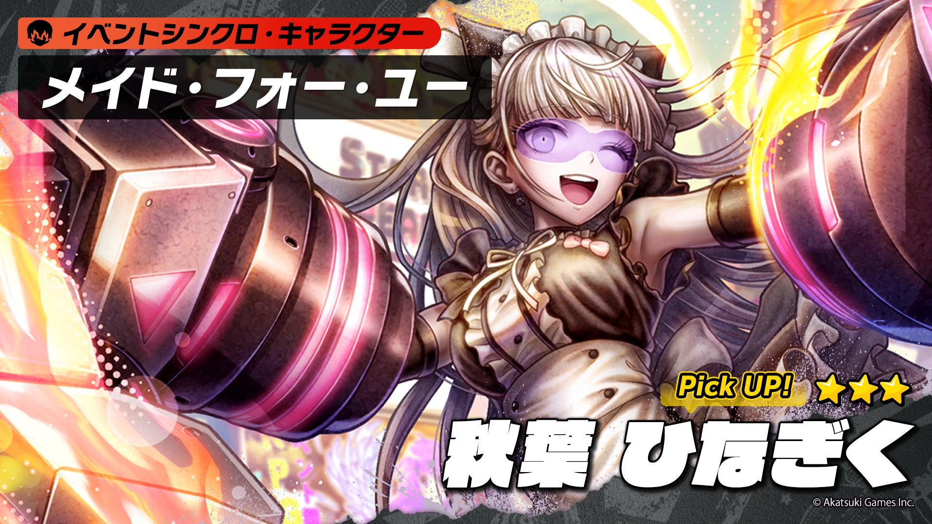 Ver1.1.0アップデート後より、期間限定で開催中のイベントシンクロ・キャラクター「メイド・フォー・ユー」にて、★3キャラクター「秋葉 ひなぎく」が新登場。