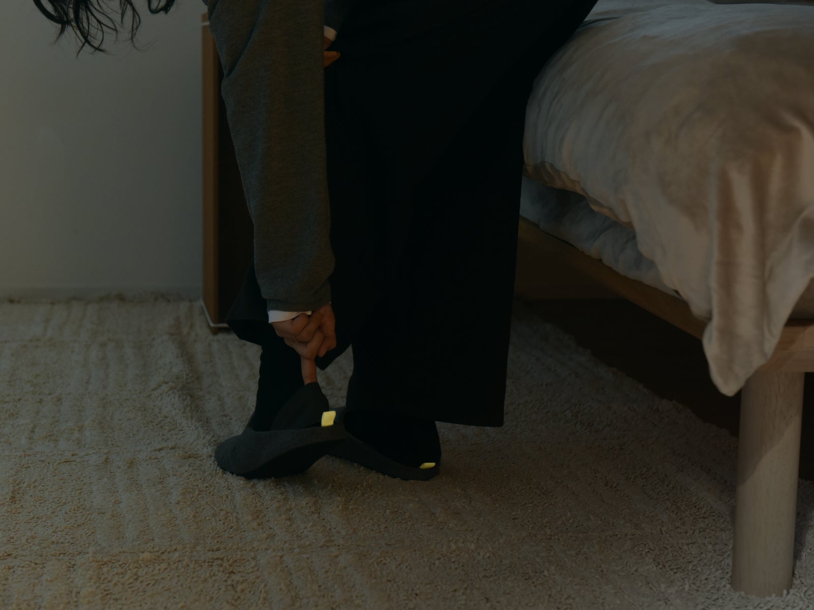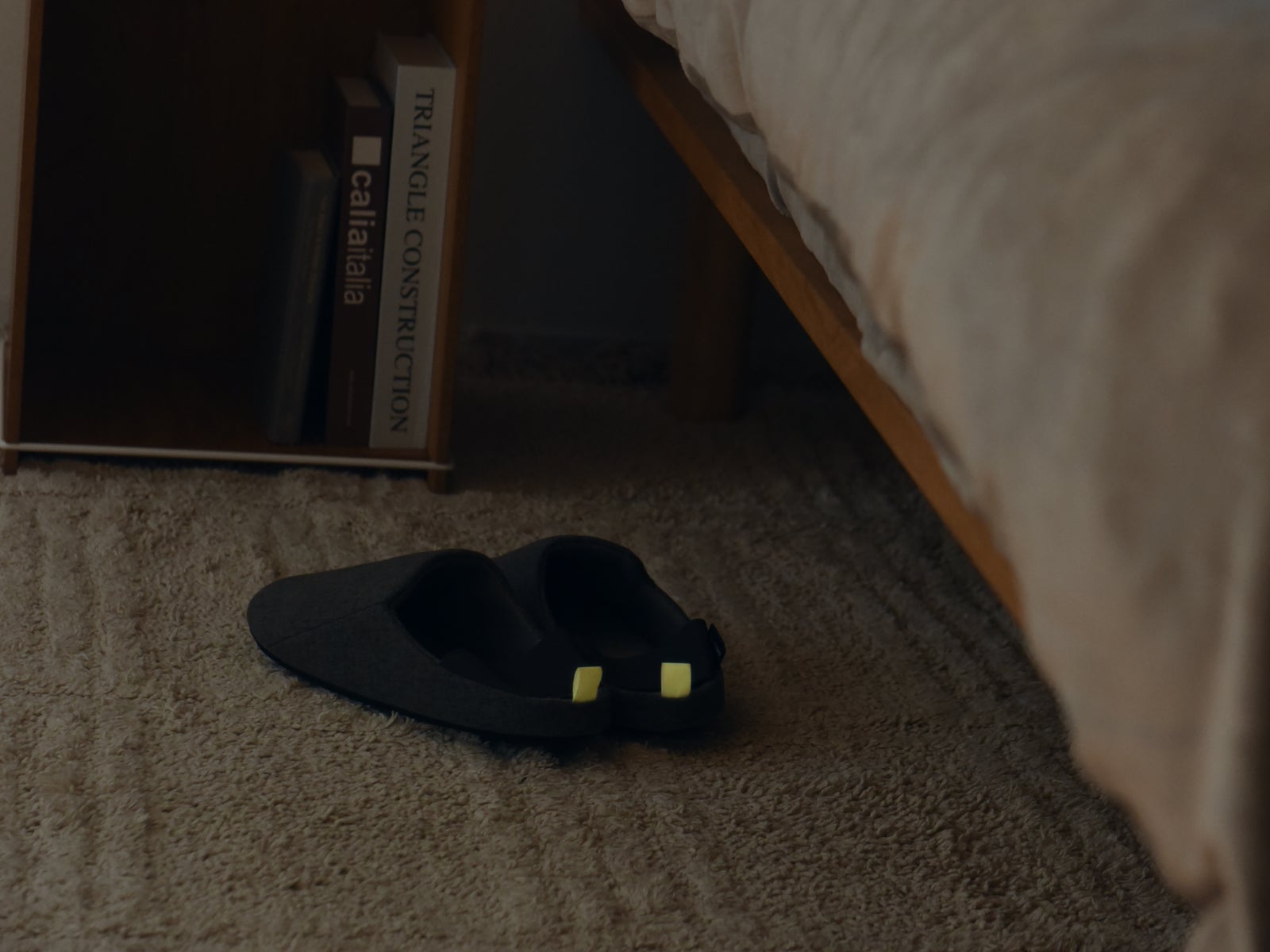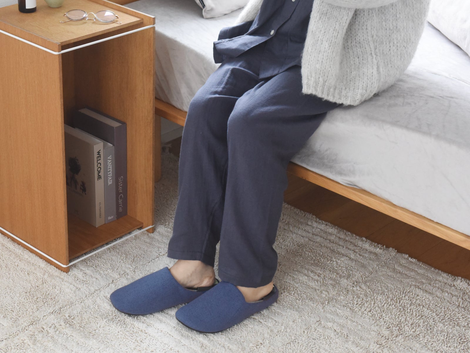 防災スリッパを普段から履いておけば、夜間の災害に備えて寝室に避難用靴を置いておく必要もなし。
