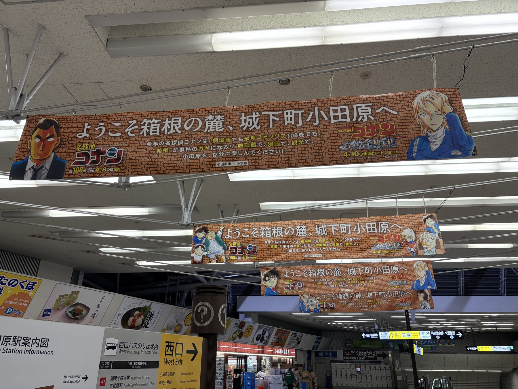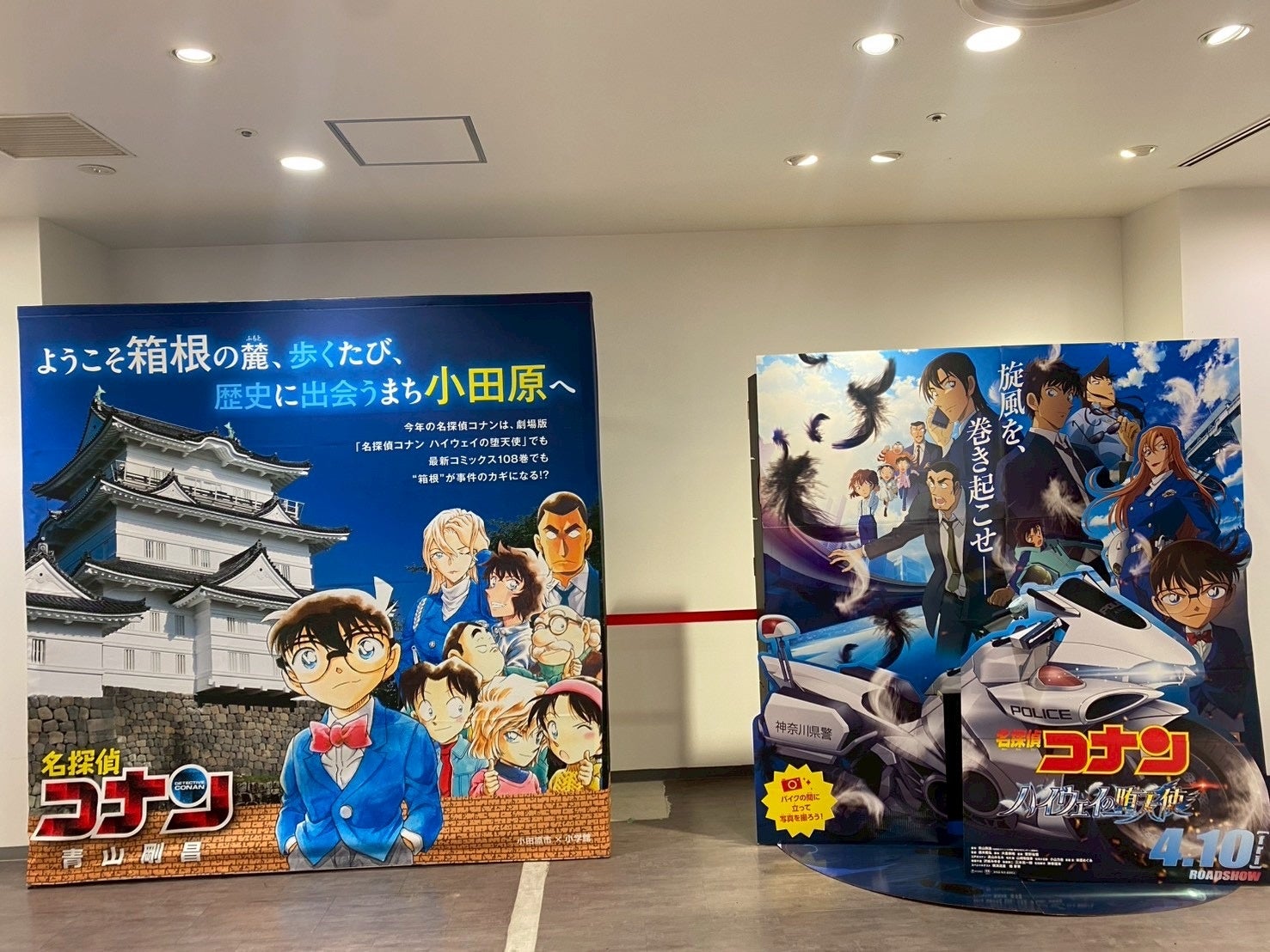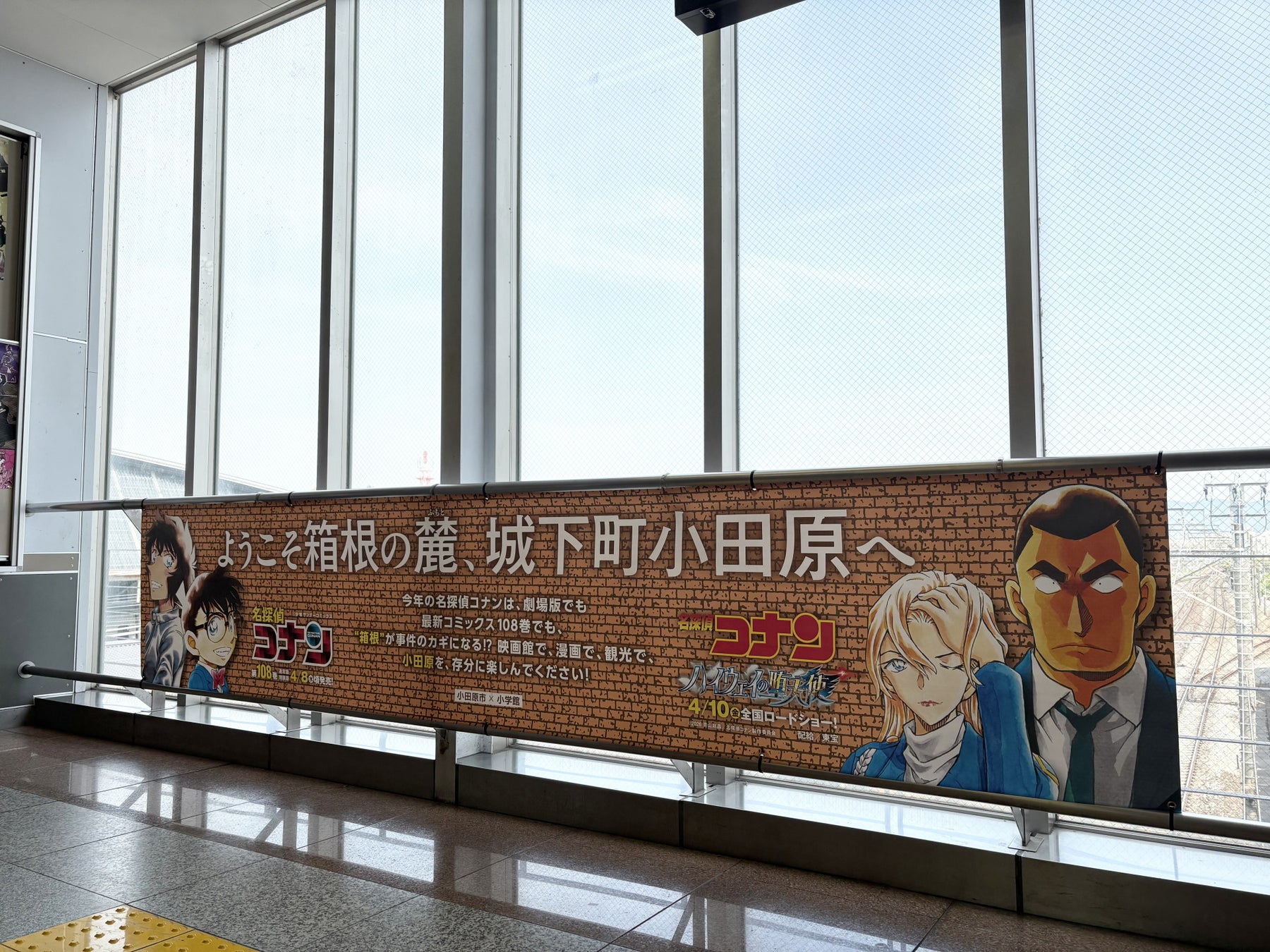 小田原駅東西コンコース内および小田原地下街「ハルネ小田原」内に「名探偵コナン」の横断幕をはじめ、床ラッピングの実施や、記念撮影コーナーを設置します。