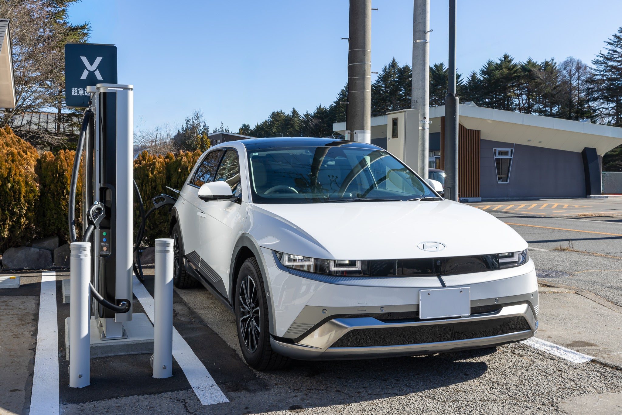 このたび開設するEVチャージステーションは、軽井沢駅周辺エリアと中軽井沢を結ぶ幹線道路沿いに位置し、地元で人気のスーパーマーケットにも隣接する好立地です。遠方から軽井沢を訪れるEVユーザーはもちろん、地元の皆様にも気軽にご利用いただけます。蓄電池型超急速EV充電システム「Hypercharger」を採用し、最大出力150kWで大容量バッテリー搭載車両にも短時間での充電が可能です。料金は、ご利用いただいた電力量に応じた従量課金制となっています。