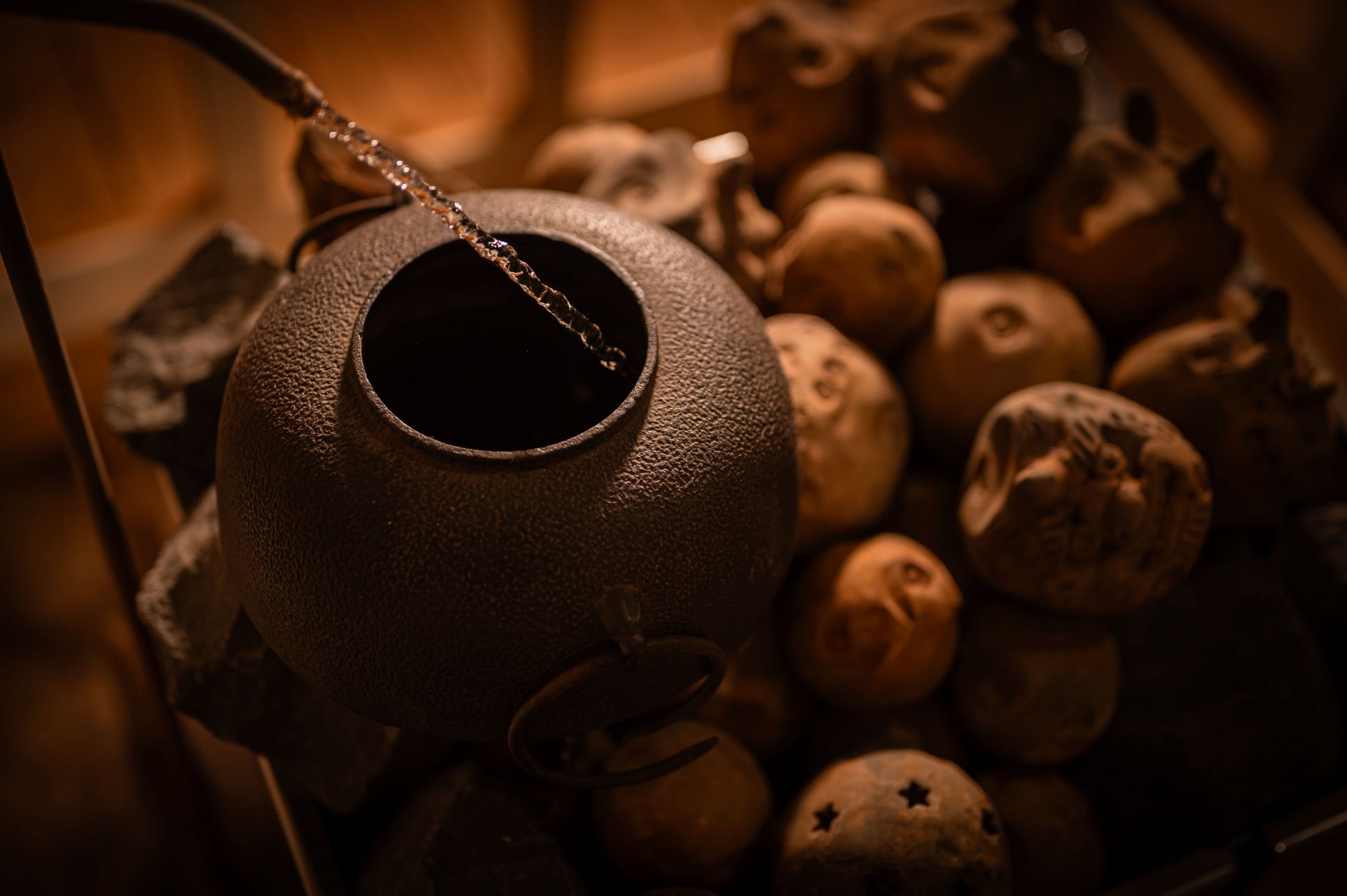 ロウリュ茶釜にお茶を入れることで、室内の乾燥を防ぎ、お茶の香りを長時間楽しむことができます。