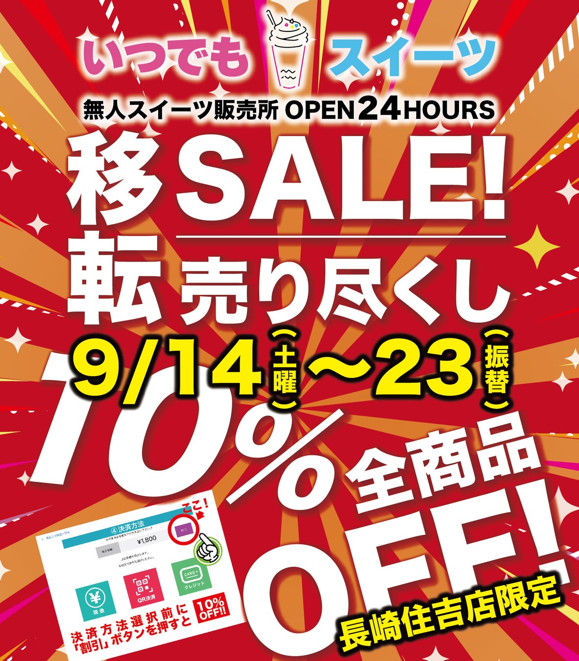 「いつでもスイーツ長崎住吉店」移転売り尽くしセール実施!!