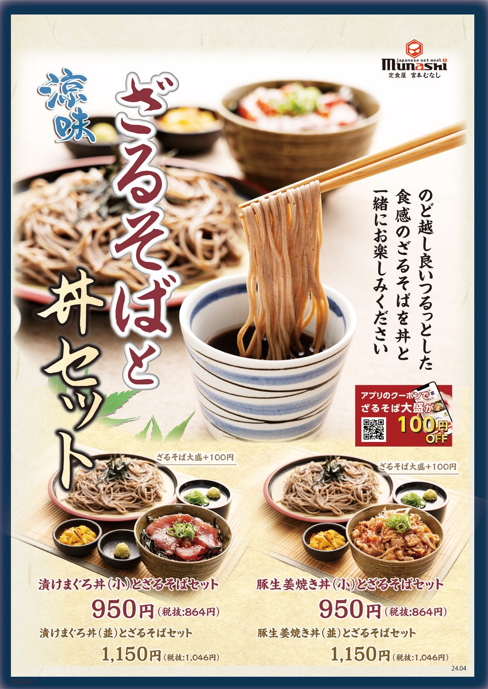 【定食屋 宮本むなし】4/24~「ざるそばと丼セット」を期間限定で販売開始