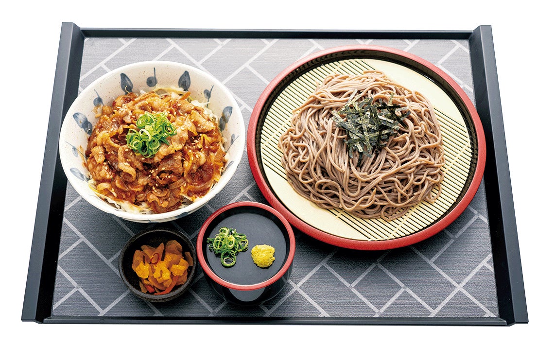 のど越しの良いつるりとした食感を楽しめるざるそばに、人気の丼ぶりをセットにしました。甘めの醤油ダレにマグロを漬け込んだ「漬けまぐろ丼」のセットはさっぱりとしながらもお腹も満足。生姜が薫る「豚の生姜焼き丼」のセットはお肉もお蕎麦も食べたい方に是非。