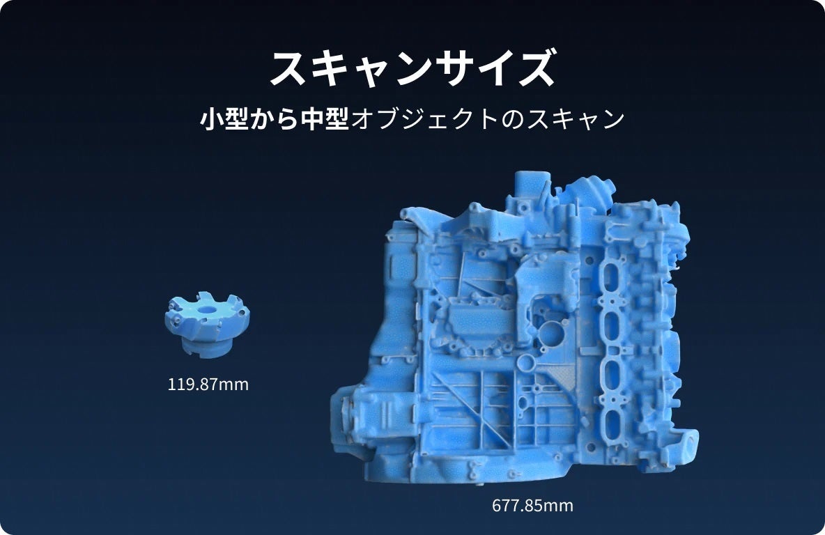 7本の平行ブルーレーザーラインスキャンモードで、細部、エッジ、複雑な表面を正確に捉え、3Dモデルの鮮明度を高めます。