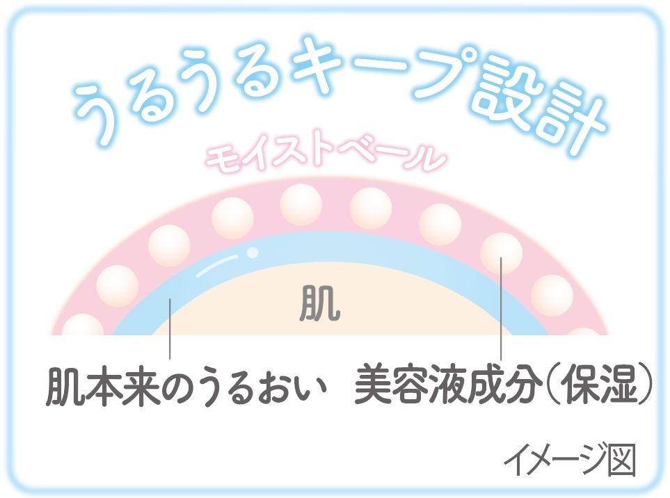 「うるうるキープ設計」を採用。バームがとろけて密着し、お肌にうるおいを閉じ込めます。また、「微細オーロラパール」配合で、気になる毛穴の凸凹もカモフラージュします。