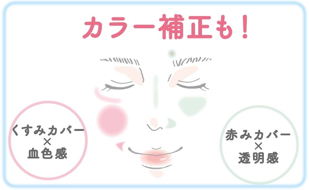 朝はカラー補正として※1・・・くすみ・赤みをポイントカバーし、気になる色ムラを均一に整えます。