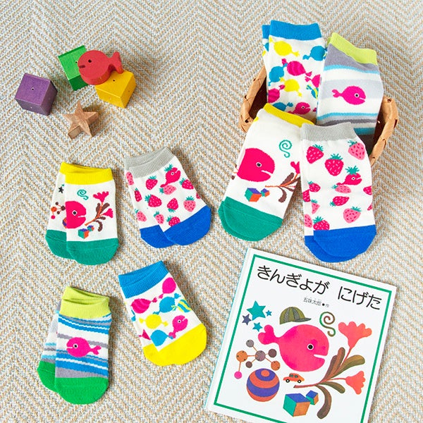 【新発売】絵本ナビのオリジナルグッズに、絵本『きんぎょがにげた』の靴下2足セットが新登場!