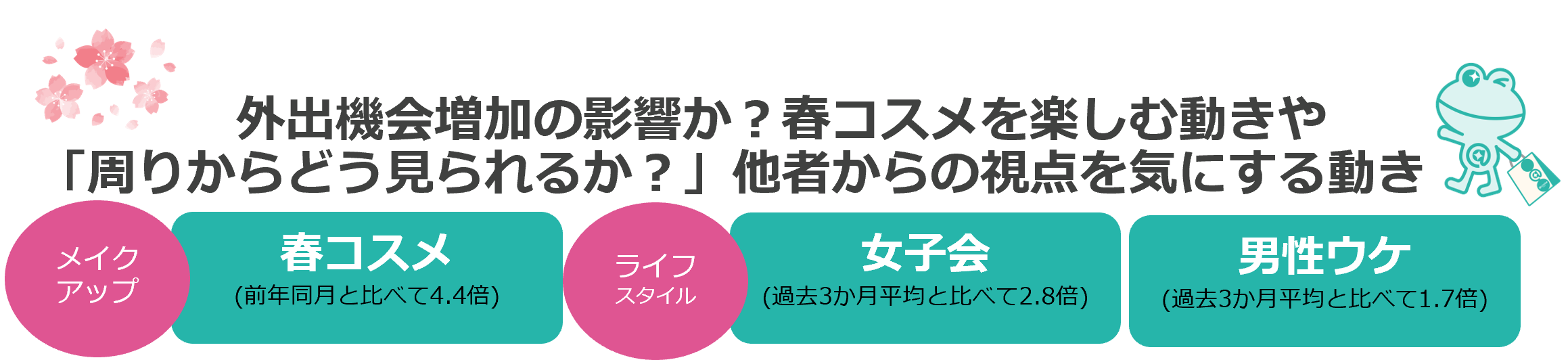 ・外出機会増加の影響か、春コスメを楽しむ動きや「周りからどう見られるか?」他者からの視点を気にする動きが