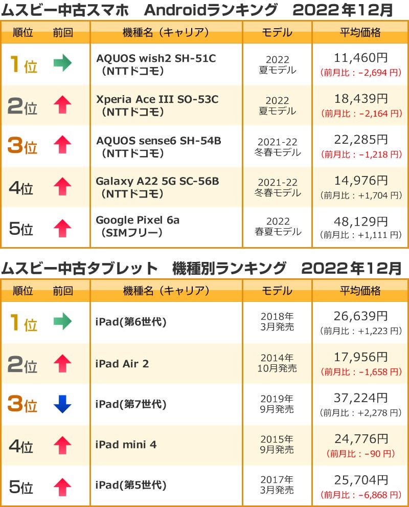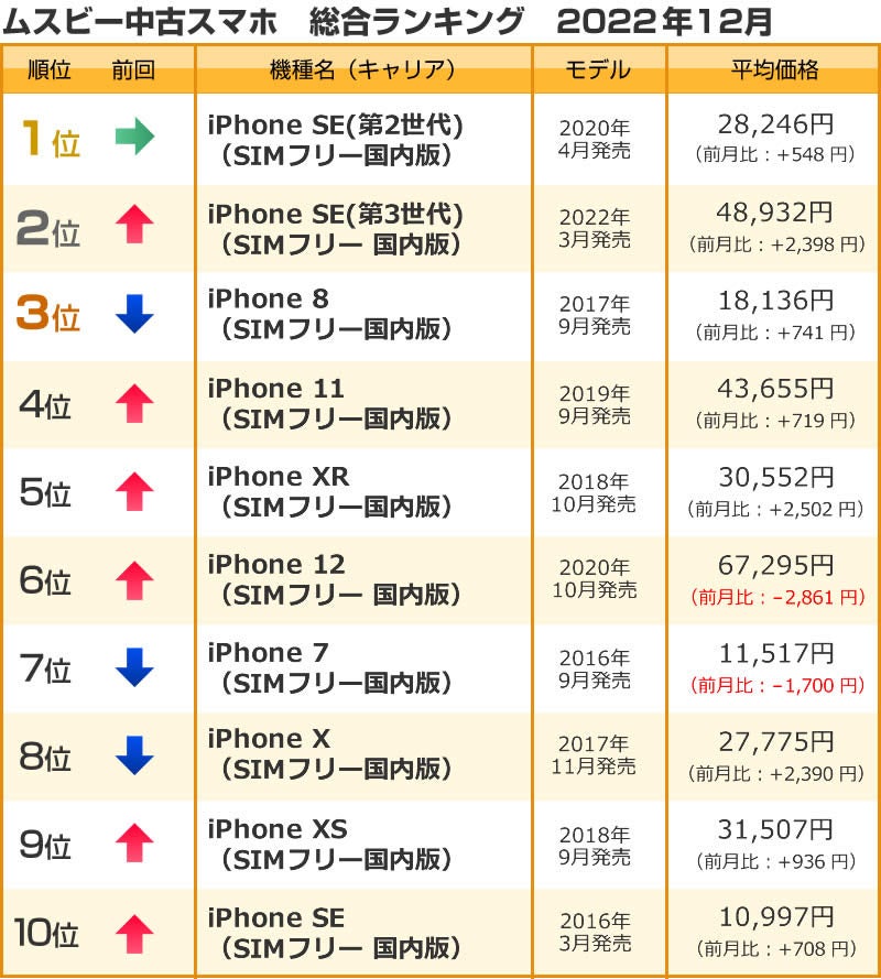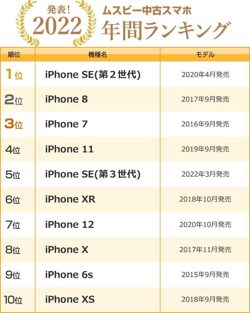 ムスビー/2022年 中古スマホ 年間ランキング発表