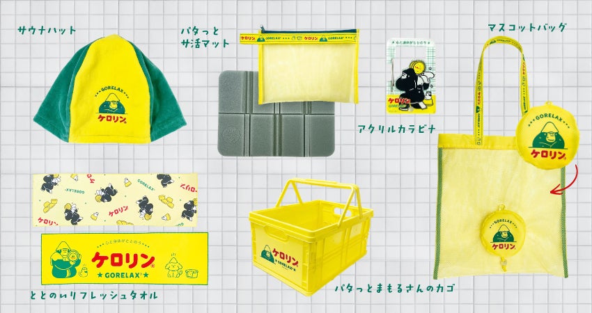 昭和レトロな銭湯のアイコン「ケロリン」と、ととのい系サウナブランドの「ごリラックス」が再タッグ。サウナハットや折りたためるカゴなど、心と体をととのえる最新ラインナップ全6種を展開。