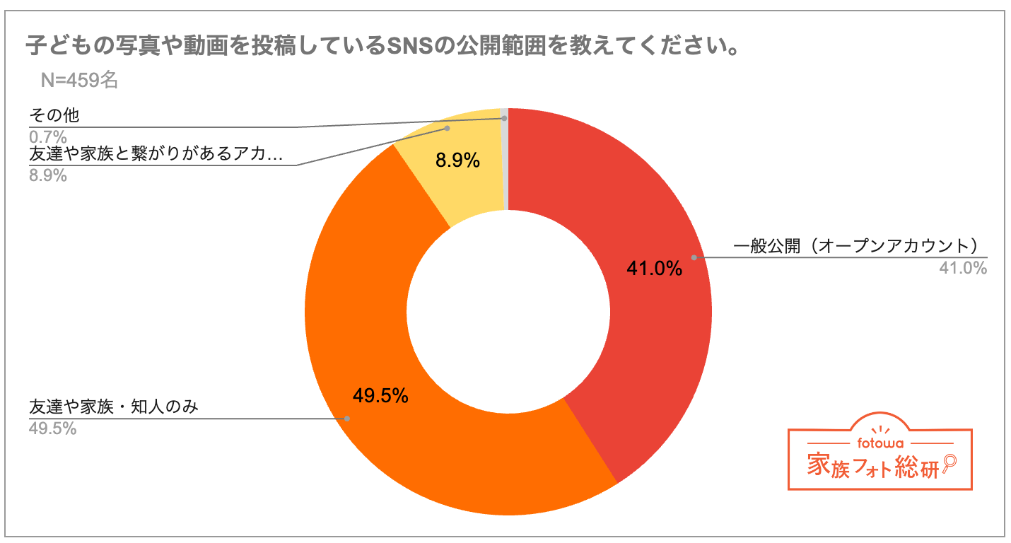 調査対象:0歳〜小学校高学年のお子さまを持ち、SNSに子どもの写真を投稿したことがある保護者459名