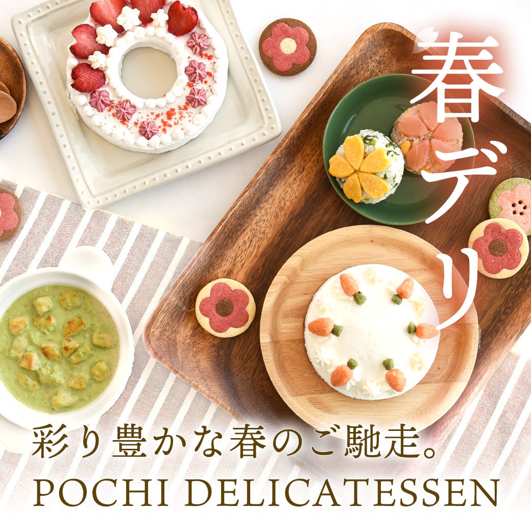 プレミアムドッグフードメーカー「POCHI」(運営:マーケティングパートナー株式会社、本社所在地:東京都新宿区、代表取締役社長:権田真司、Tel:03-6772-8194、https://www.pochi.co.jp/)は、3月21日(金)より、「春のデリ」5種を季節限定で販売します。サクラクッキーを散りばめたデコレーションケーキやキャロットケーキのほか、お花をモチーフにした押し寿司やクッキー、えんどう豆のポタージュなど、華やかな春色満開の春デリ。