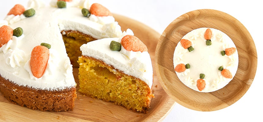小さなニンジンのデコレーションがかわいらしいキャロットケーキ。スパイスは使用せず、ニンジンたっぷりのやさしい甘さの生地に、チーズクリームを乗せました。プレゼントにもおすすめです。(クール便でのお届けのため、別途クール便代がかかります。)