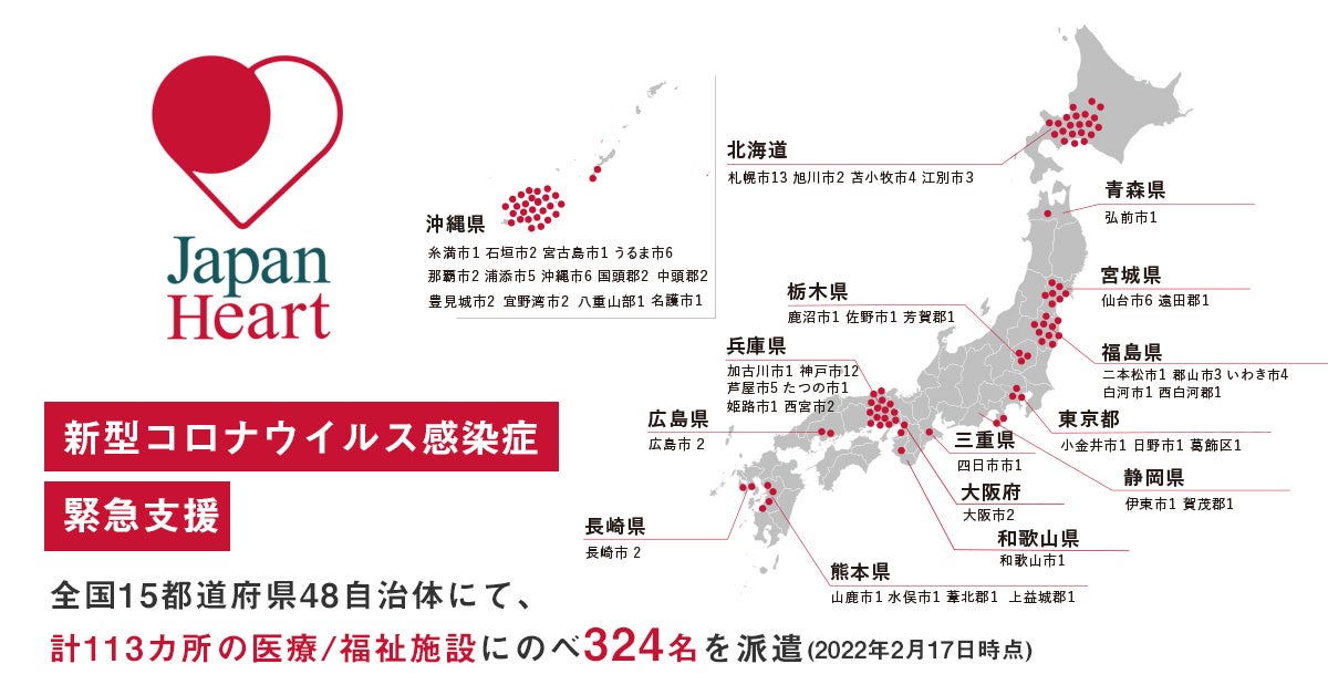 国際医療NGOである特定非営利活動法人ジャパンハート(東京都台東区 理事長:𠮷岡春菜)は、新型コロナウイルスの感染拡大に伴い、今週より沖縄県・福島県・兵庫県の新たなクラスター施設へ医療チームを派遣しており、さらに本日より静岡県でのクラスター支援を開始しました。
