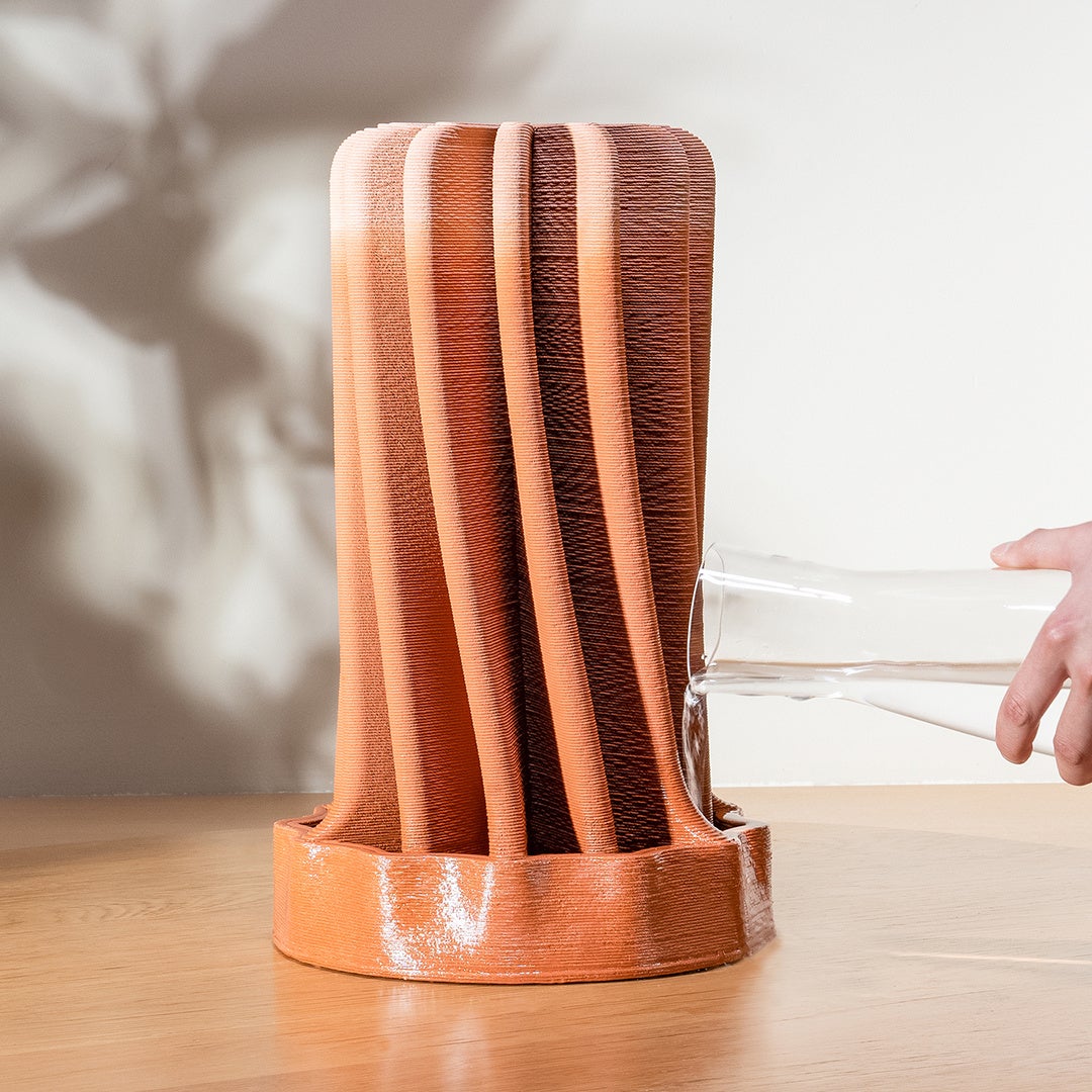 セラミック廃棄物をリサイクルして作られた、電力を必要としないサステナブルな加湿器。メンターからのアドバイスを受け、実験を繰り返し、吸収効率を最大化させるセラミックパウダーの配合と形状にたどり着き、機能性のみならず、エレガントなデザインを兼ね備えた加湿器を実現。
