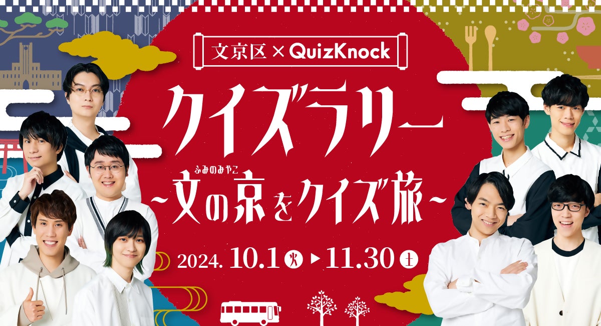 株式会社baton(東京都品川区、代表取締役 衣川洋佑)が運営するQuizKnockと東京都文京区がコラボしたイベント「文京区×QuizKnock クイズラリー ~文の京をクイズ旅~」( https://www.city.bunkyo.lg.jp/b014/p007607.html )が、2024年10月1日(火)から11月30日(土)に開催されます。