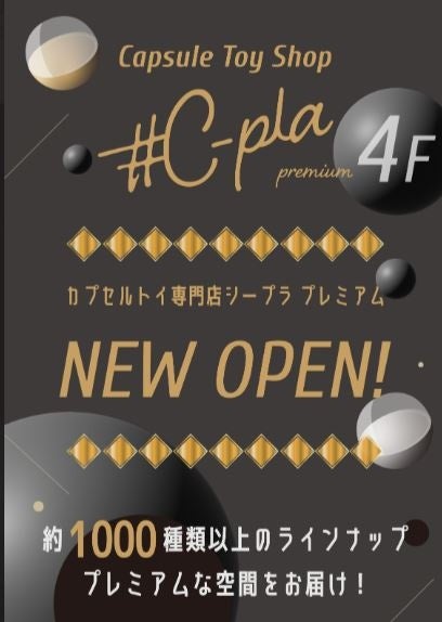 #C-pla(シープラ)は、全国にオリジナルのお店を展開する「カプセルトイ専⾨店」です。その中でも「#C-pla premium」はプレミアムな空間をコンセプトにカプセルトイ専門店のにぎやかな雰囲気とは一変、ゆったりとした上質な空間で、じっくりとカプセルトイの世界を楽しめる新たな#C-plaブランドです。内装では黒を基調にし、シックで上品なイメージで統一しております。