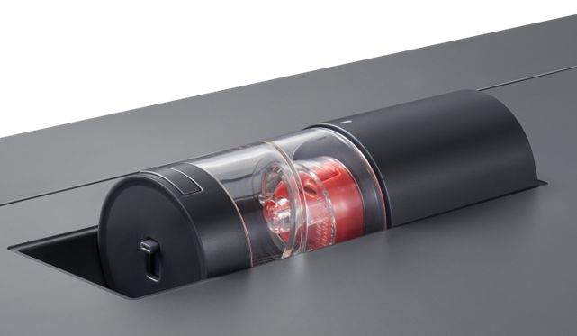 通常お魚の飼育を始めるにあたっては、水槽・フタ・フィルター・ポンプ・排水ホース・エアー調節バルブ・水質調整剤など個々に揃えるべきパーツがたくさんあり、それらを組み立てる手間など、導入ハードルが高く感じられる傾向にあります。また装置がたくさんあることから、配線が多くなってしまい、外観を損ねてしまう欠点もあります。『Biorium』は、必要なポンプ・給餌器付きフタ・ACアダプタ・フィルター(2種)・排水ホースなどの全てのパーツが1セットにまとまったオールインワン型なので、初心者でも簡単に始められます。加えて、コンセントが一つだけなので、アクアリウムならではの配線ゴチャゴチャ問題も解消しました。