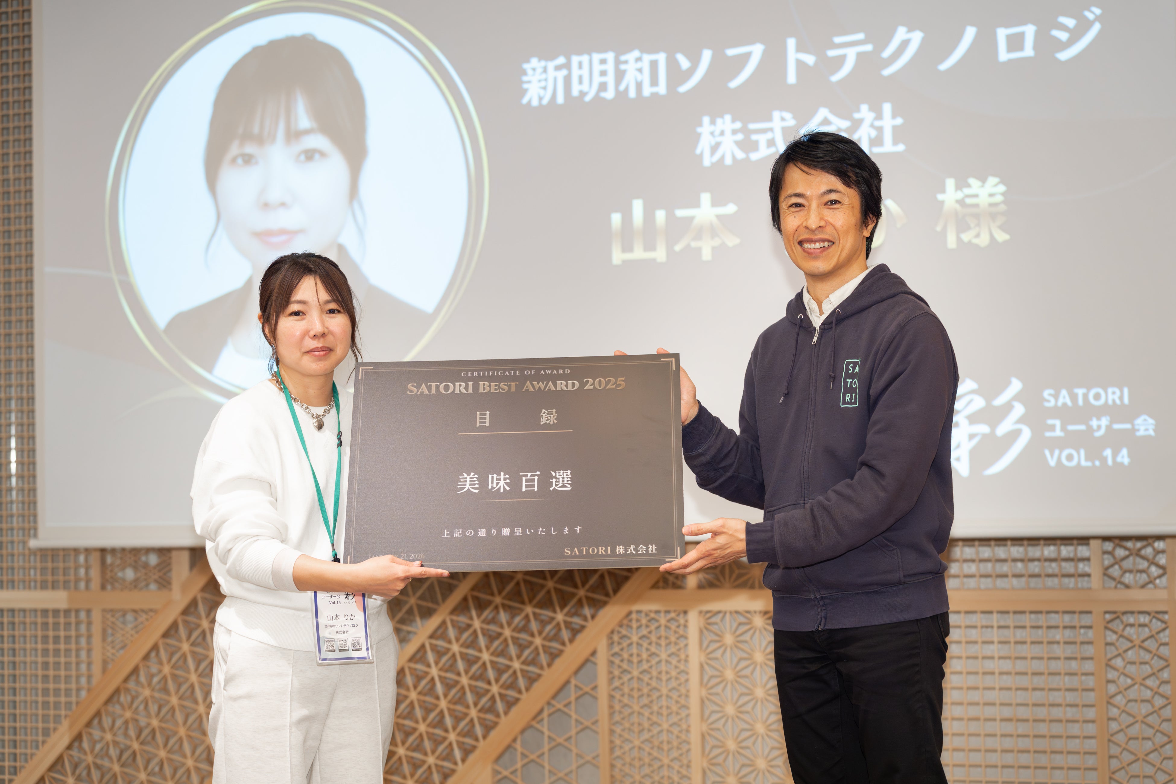 当日の投票の結果、「SATORIベストアワード2025」は、新明和ソフトテクノロジ株式会社 山本 りか 氏が受賞しました。