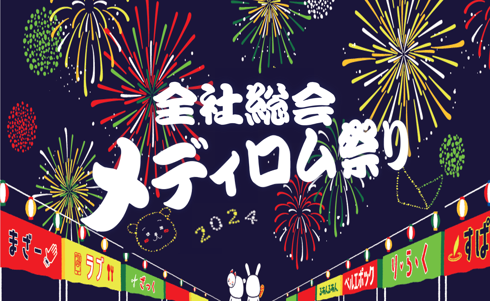 メディロムグループの全社総会は毎回テーマが設定されています。2024年下半期全社総会では楽しさと活気あふれる “祭り”がテーマでした。人は元気がない時、つい下を向きがちですが、祭りの花火は誰もが思わず顔を上げてしまう素晴らしい文化です。花火が夜空に広がる瞬間に人々の視線は自然と上向き、気持ちも高揚します。この顔を上げる瞬間を私たち全員で共有したいという思いからテーマを “祭り”にしました。