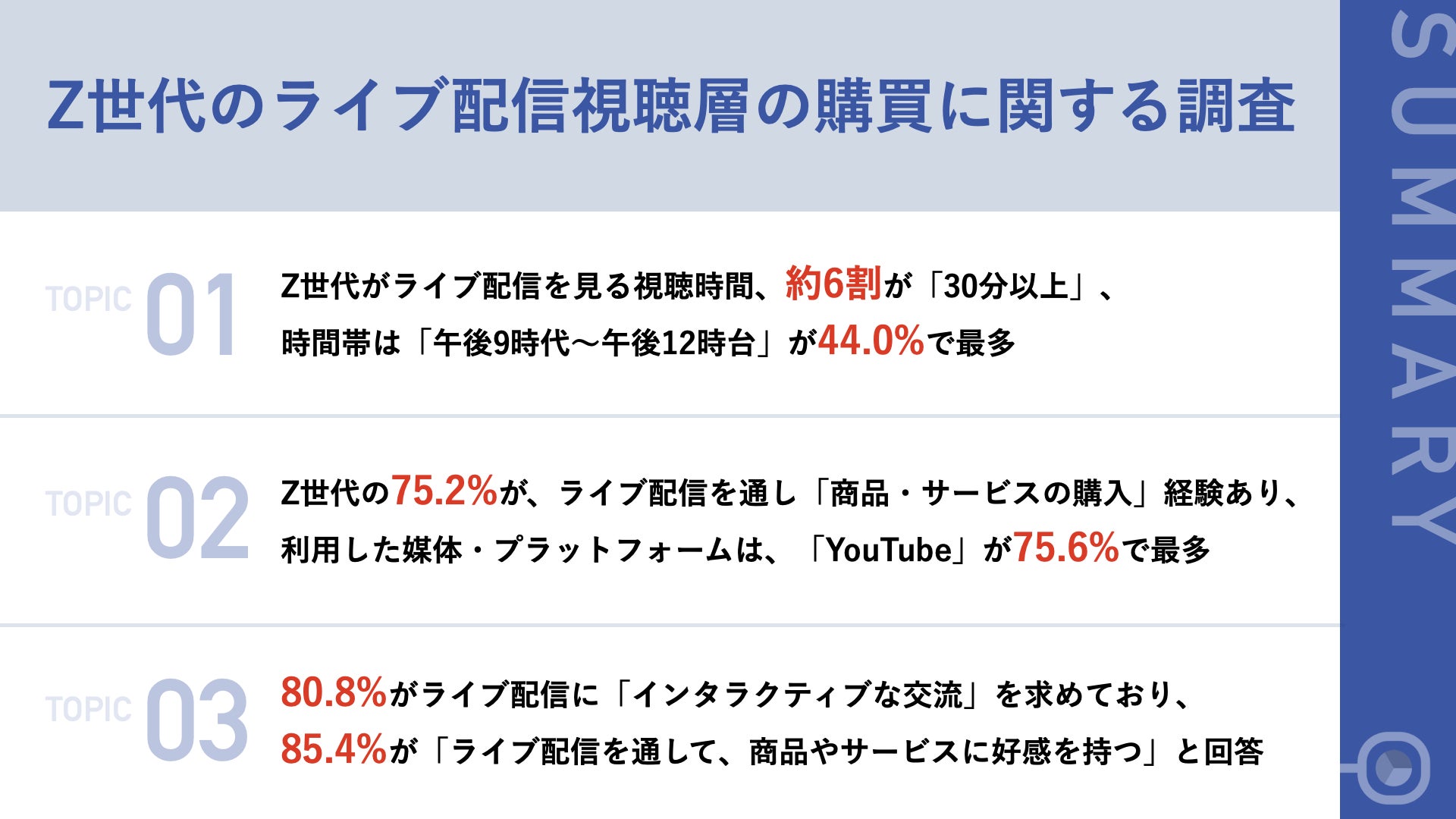 - Z世代の75.2%が、ライブ配信を通し「商品・サービスの購入」経験あり