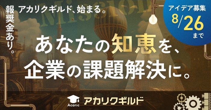 優れたアイデアを立案した参加者は、2024年9月22日(日)に開催される対面でのアイデアコンテストへ参加することができます。アカリクギルド専用特設Webページにてアイデアの募集を開始しており、募集の締め切りは2024年8月26日(月)を予定しております。