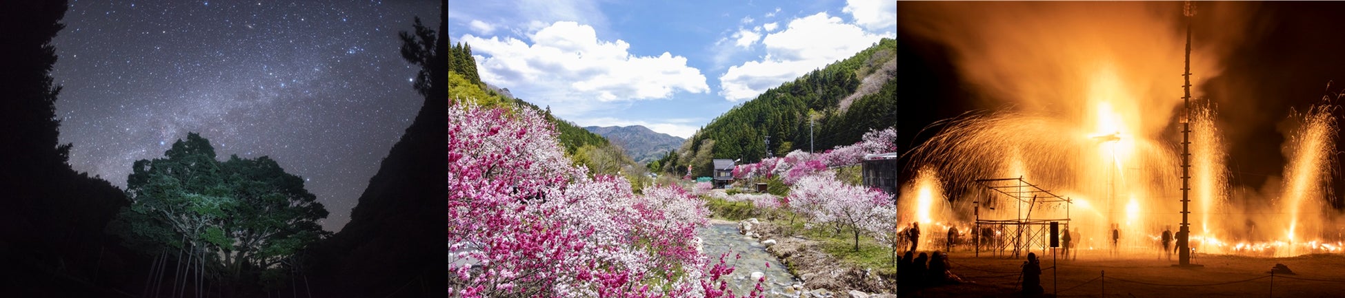 長野県の南端にあり、「昼神温泉」と「花桃の里」で知られる、山あいの静かな村です。昭和48年に湧出した昼神温泉は「アルカリ性単純硫黄泉」pH=9.7のとろっとした滑らかなお湯はまるであたたかな化粧水に浸かっている様。つるつるすべすべの肌触りになることから 『美肌の湯』 とも呼ばれています。また、環境省の実施する全国星空継続観察で「星の観察に適していた場所」の第一位(平成18年)に認定されています。この「日本一の星空」を地域活性、観光活性に活かし、誘客促進することを目的に2012年にスタービレッジ阿智誘客促進協議会を設立。