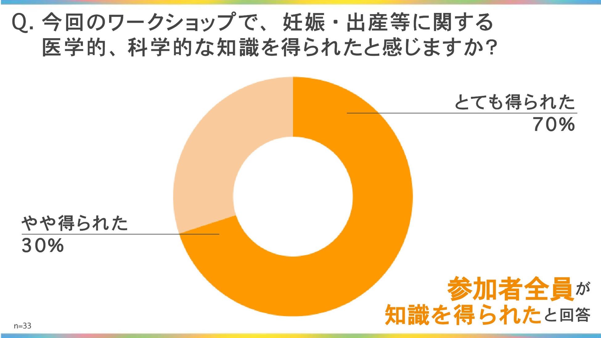 知識の習得: 妊娠・出産に関する医学的・科学的な知識を得られたと感じますかという設問に、全員が「得られた」と回答。