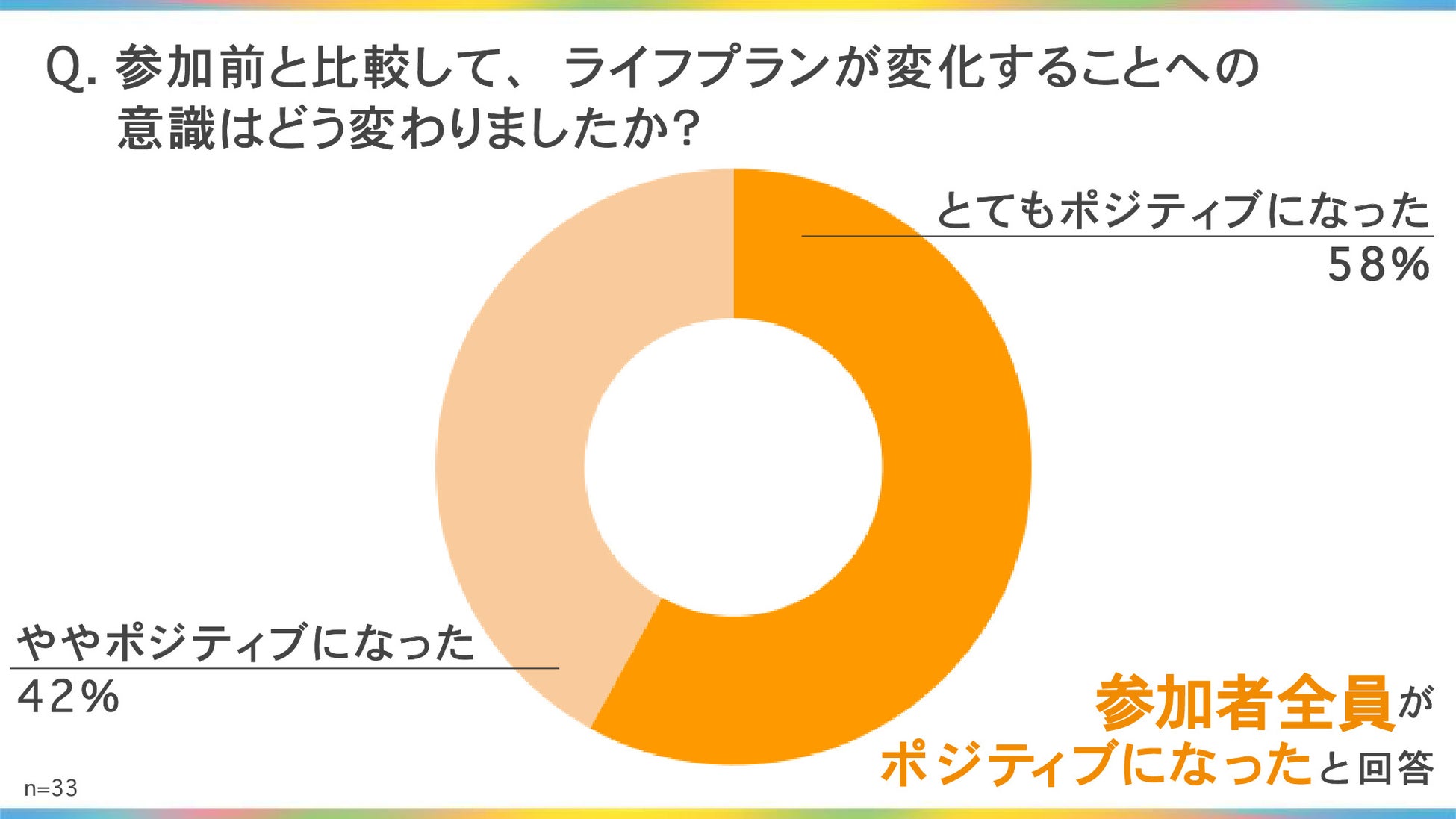 意識変容: ライフプランが変化することに対する意識として、回答者全員が「ポジティブになった」と回答。