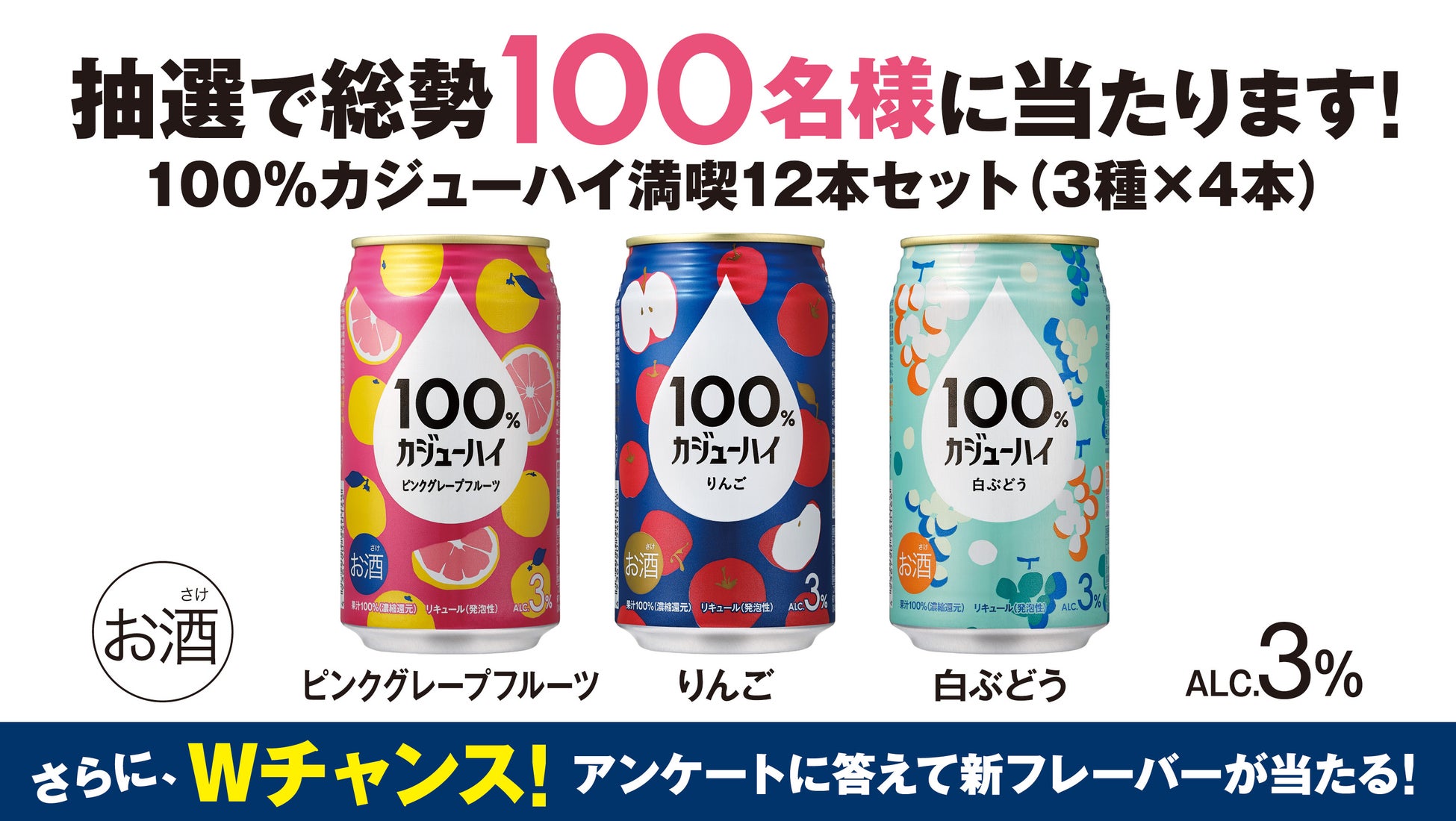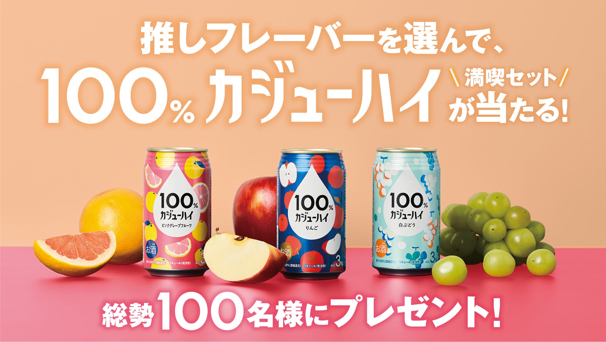 【SNSプレゼントキャンペーン】『果実100%の、贅沢。』「100%カジューハイ満喫セット」が総勢100名様に当たる!好きな味を教えてキャンペーン!