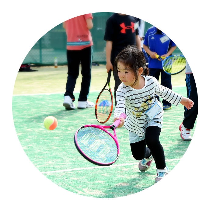テニスは、走る、跳ぶ、止まる、ひねるといった、様々な競技にも通じる基本的な運動技能を養うことができるスポーツです。