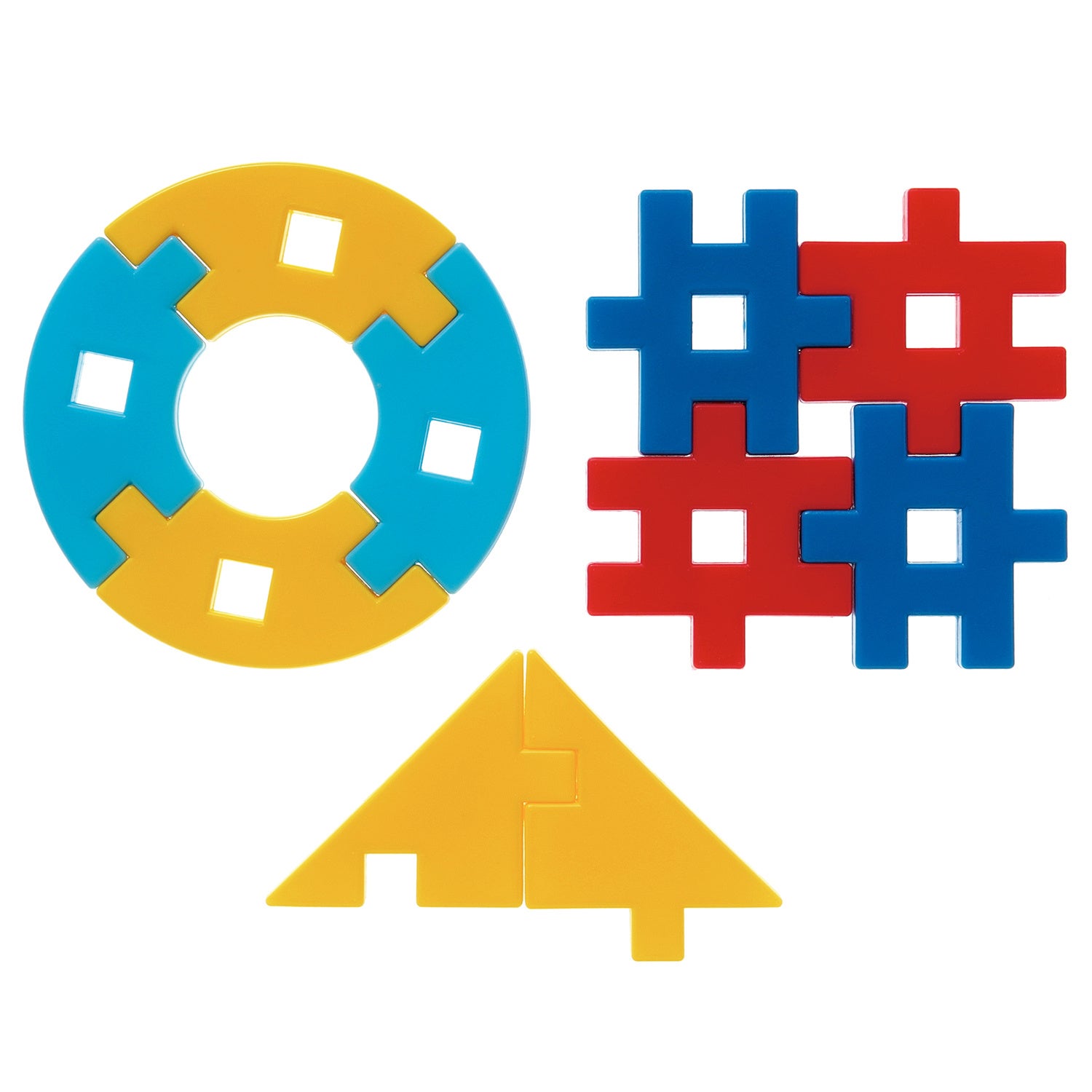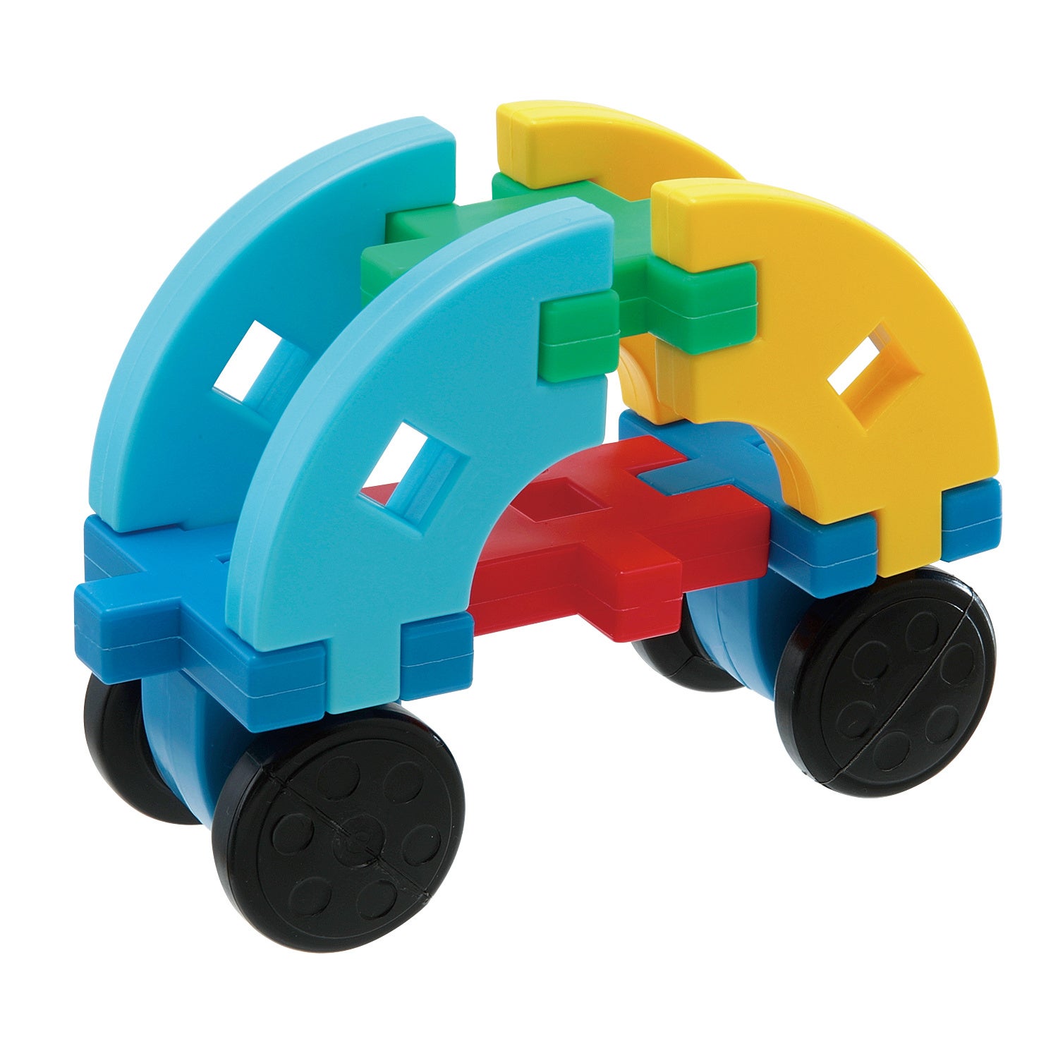 また、パーツが大きいため、1.5歳からお使いいただいても誤飲の心配がなく、お子さまのファーストブロックにぴったりです。最初は積む&こわす遊びからスタートし、食べ物や線路などに見立てる遊び、パーツを自由に組む遊び、そして頭の中で考えたものを作品にする遊びへと発展し、小学生になるまで長く遊んでいただけます。