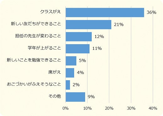 上位は「クラス替え」「新しい友だちができること」で、2つの回答を合わせると、過半数を占める結果となりました。