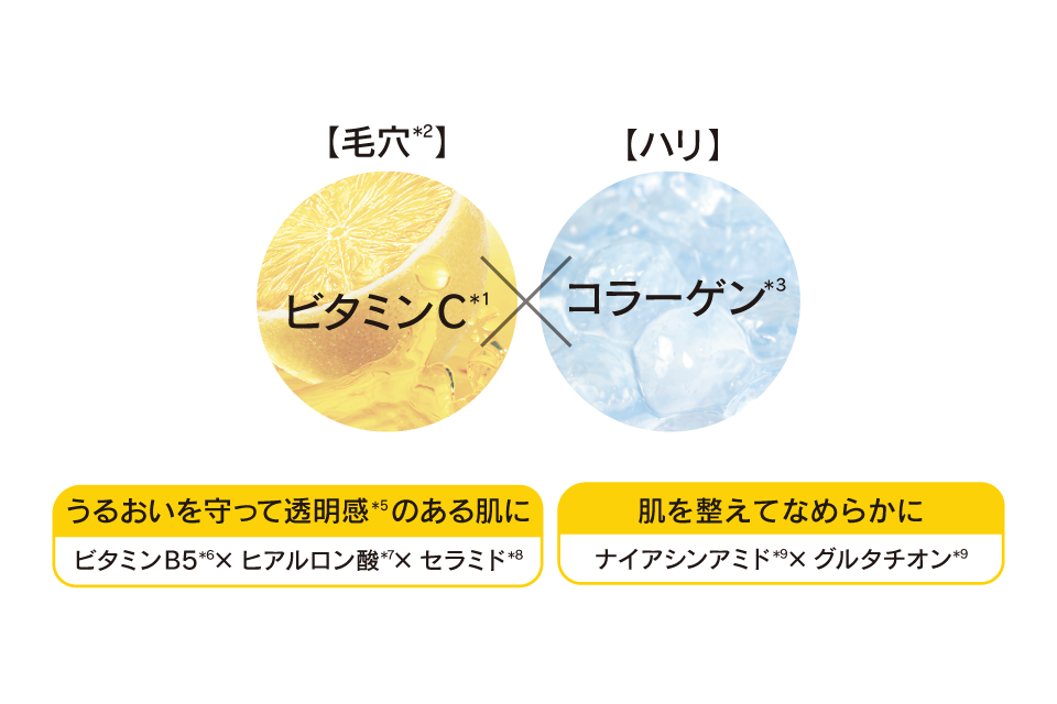 POINT1:ビタミンC*¹×コラーゲン*³美容液で毛穴*³集中ケア