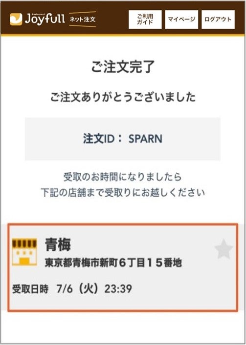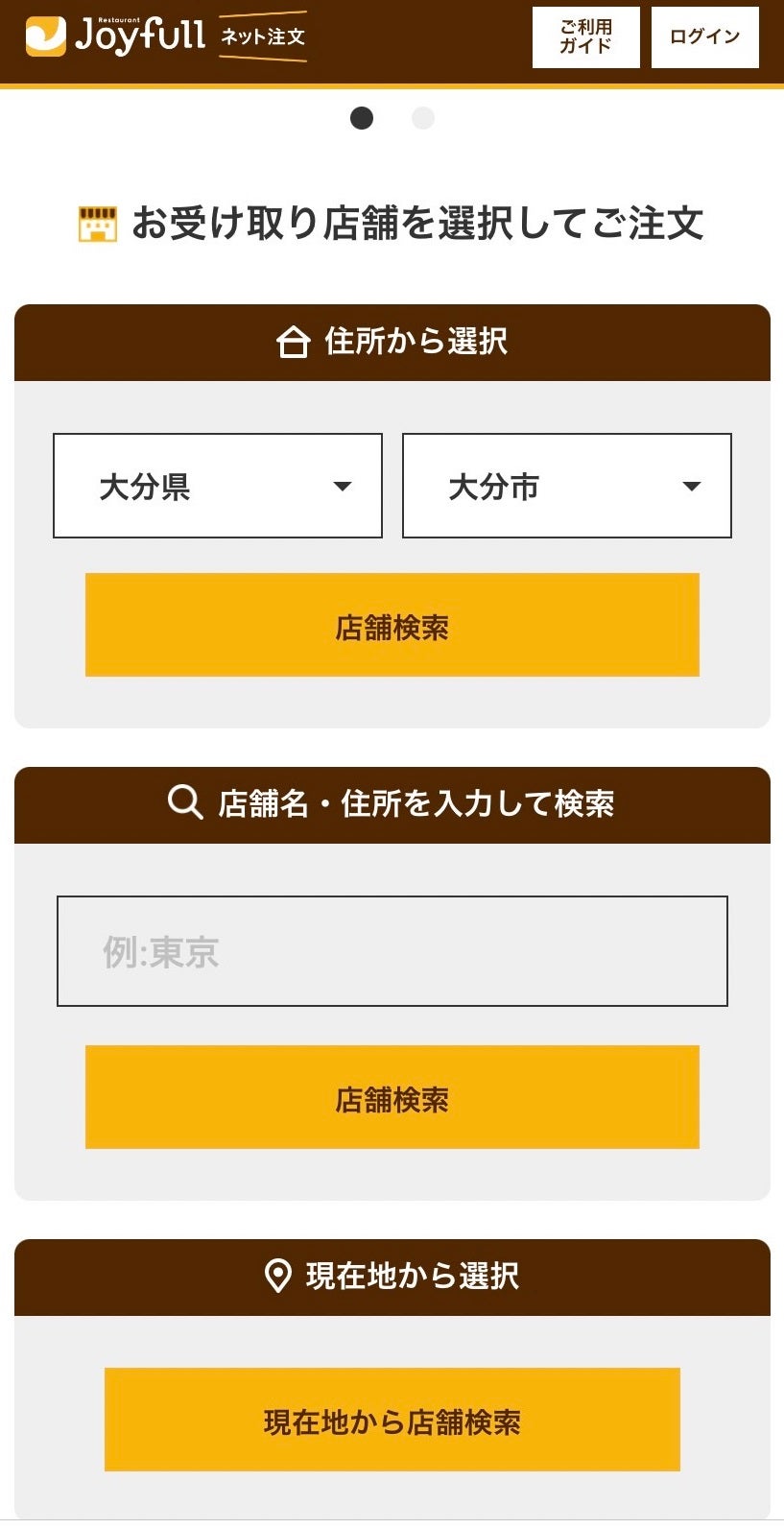 ネット注文ページ(https://joyfull-weborder.jp)からご利用店舗と受取り日時を選択し、