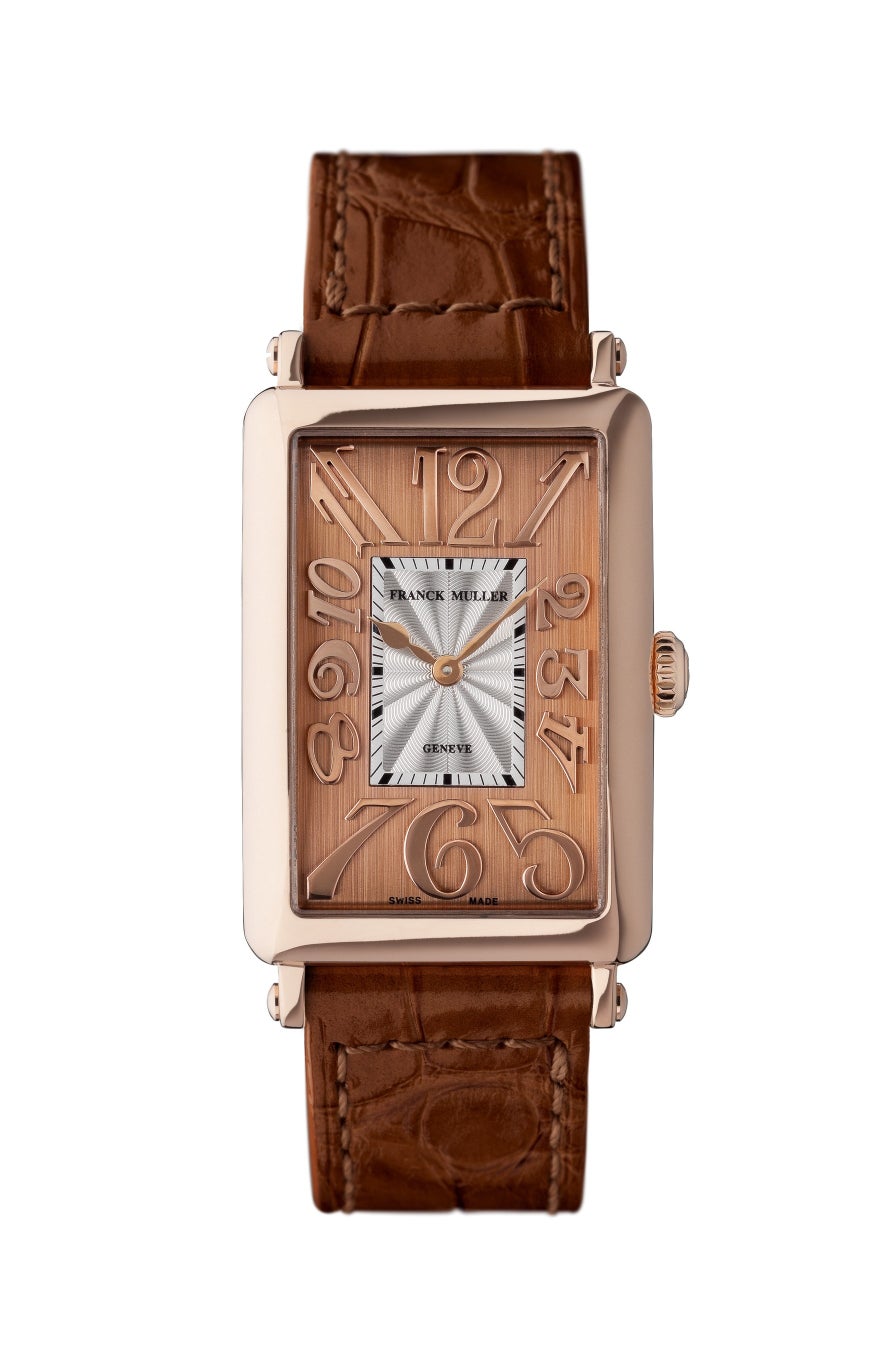 「ロングアイランド」のシャープな長方形のケースは、横から見ると着想を得た橋の弧を描く曲線が象徴的に採用され、マスキュリンな印象になりがちなスクエアフォルムを官能的に魅せています。これがフランク ミュラーを象徴する曲線美であり、見た目だけでなく、腕にフィットする人間工学的な着け心地の良さも実現しています。また、文字盤全体に広がるビザン数字は、華やかで、視認性が高く、ひと目でわかる個性を発現。さらに繊細なスペード型の時針、ギョウシエ彫りなど、随所に審美眼が冴え渡り、唯一無二の輝きを放っています。