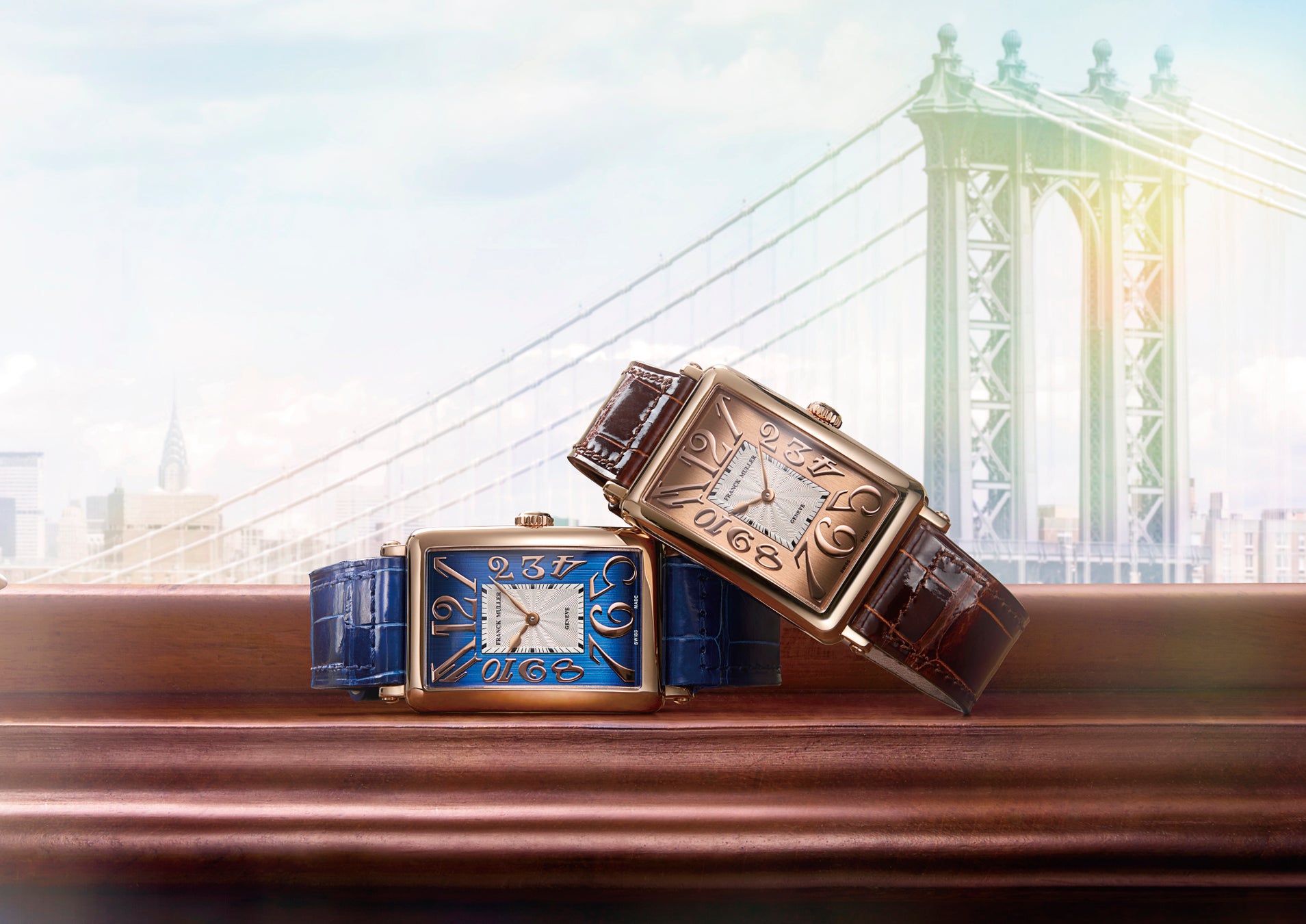 1992年に鮮烈なブランドデビューを果たしたフランク ミュラーは、その当時、時計愛好家たちに招かれ、世界中を飛び回っていました。そうした中、フランク ミュラーは、マンハッタンというエキサイティングなシティと、ロングアイランドの華やかな別荘を自由に行き来するアメリカの富裕層のライフスタイルに触れ、大きなインスピレーションを受けます。シャープでエネルギッシュな摩天楼で生きる時間と、優雅でリラクシーな別荘で過ごす時間、この両面の要素を兼ね備えた新しい時計をつくりたい。そこで発想の原点となったのが、ふたつの街を結ぶ優美な曲線を描く橋。このクィーンズボロ橋が造られた二十世紀初頭はロングアイランドに豪奢な別荘が建ち並びはじめた頃であり、また世界中にアールデコという美術デザインの潮流が隆盛を極めた時代です。こうしてアールデコをベースとした、アクティブな時間とリラックスした時間、シティのシャープさとカントリーサイドの優雅さ、直線と曲線を融合した「ロングアイランド」が誕生しました。この時計には、いくつもの時間を所有する現代人のライフスタイルへのまなざし、ロングアイランドという土地に息づくルーツ、そして黄金時代のアートに対するリスペクトが込められています。